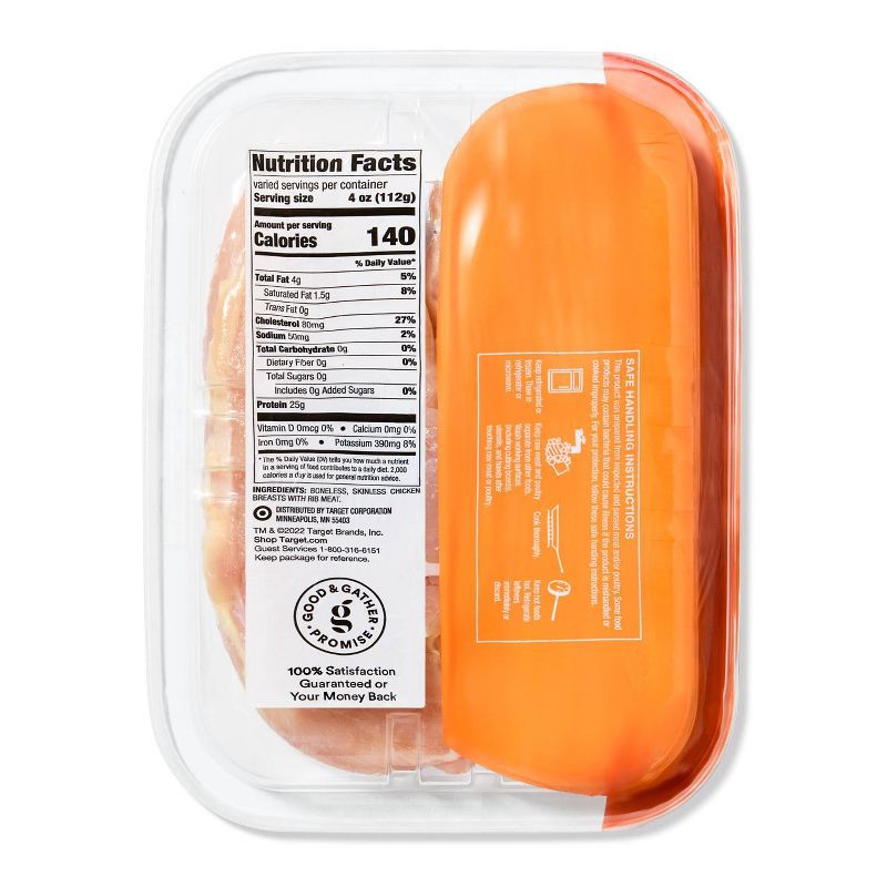 A package of All-Natural* Boneless Skinless Chicken Breasts With Rib Meat from Good & Gather™ makes it easy to stay stocked up on a versatile grocery staple. All natural and no added hormones or stero…