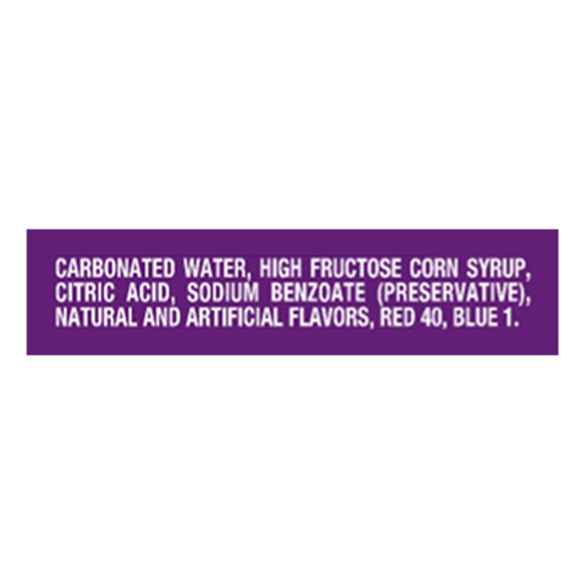 Carbonated Water, High Fructose Corn Syrup, Citric Acid, Sodium Benzoate (Preservative), Natural and Artificial Flavors, Red 40, Blue 1.