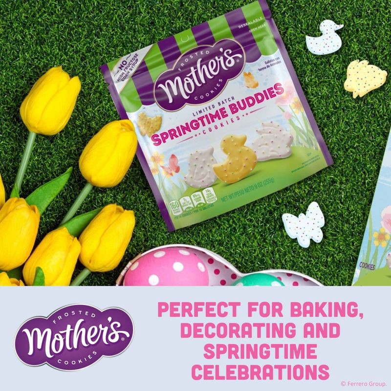 - Receive 1 resealable 9-ounce bag of limited-batch Mother's Springtime Buddies Cookies, perfect for the spring season