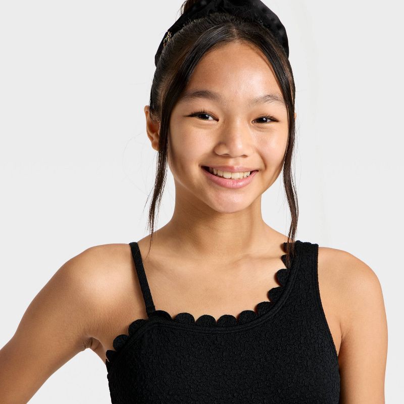 Girls' Scallop Puff Jacquard One Piece Swimsuit - art class™ Black XL