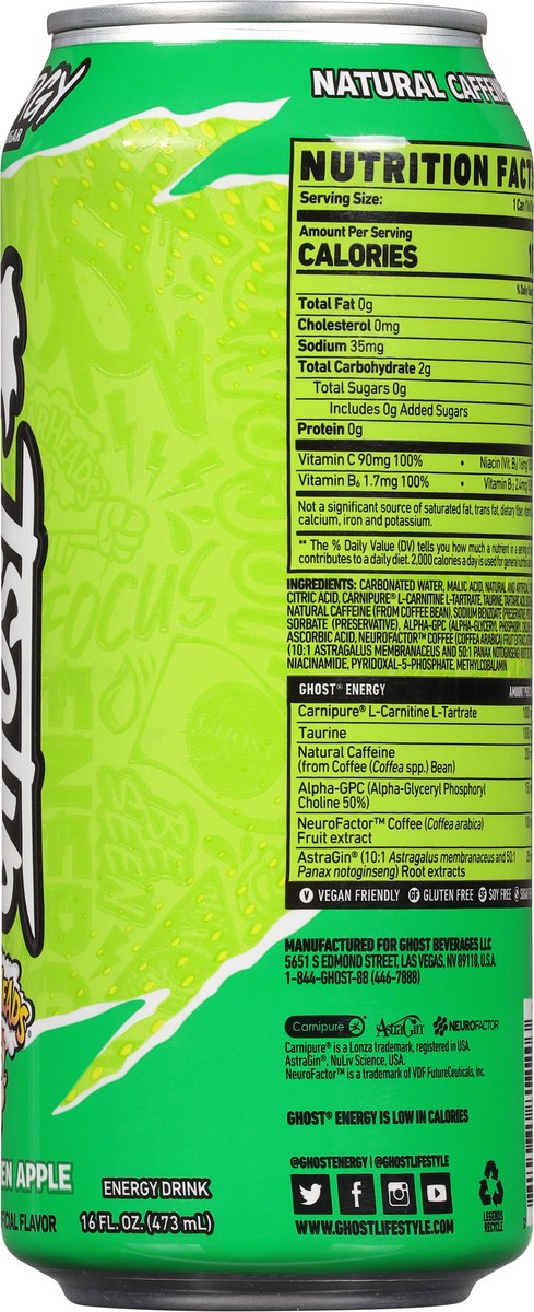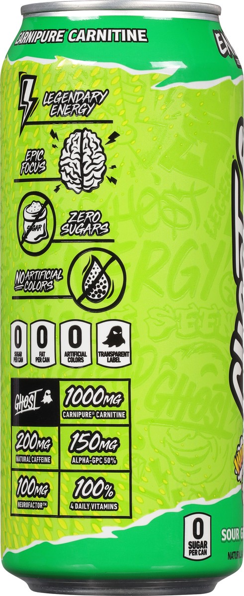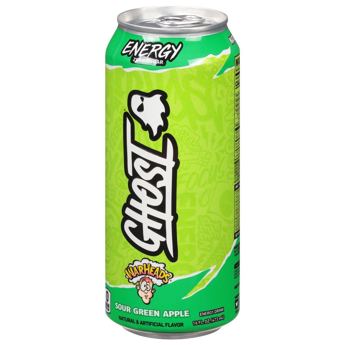 Ghost Zero Sugar Energy Drink, Warheads Sour Green Apple, 16 fl oz can