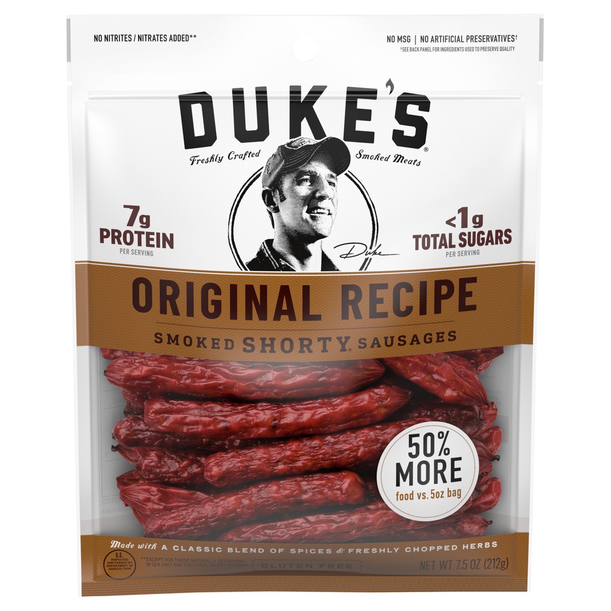 - One 7.5 oz. bag Duke's Original Recipe Smoked Shorty Sausages, Keto Friendly, Gluten Free