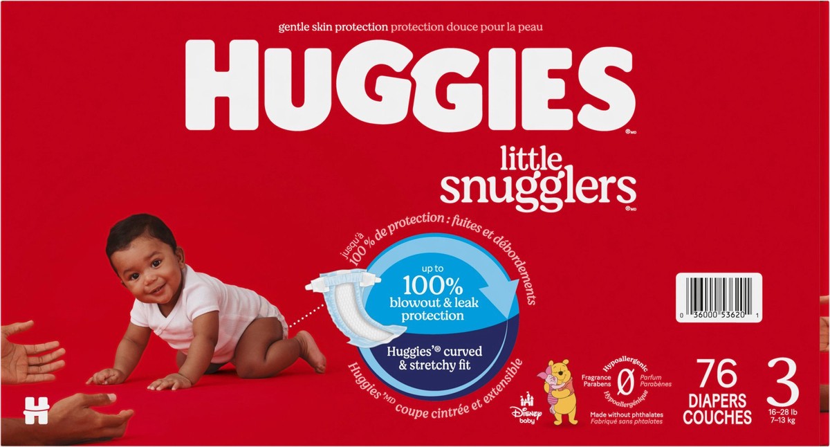 Huggies Little Snugglers Baby Diapers Size 3 (16-28 Lbs) - 76 Count