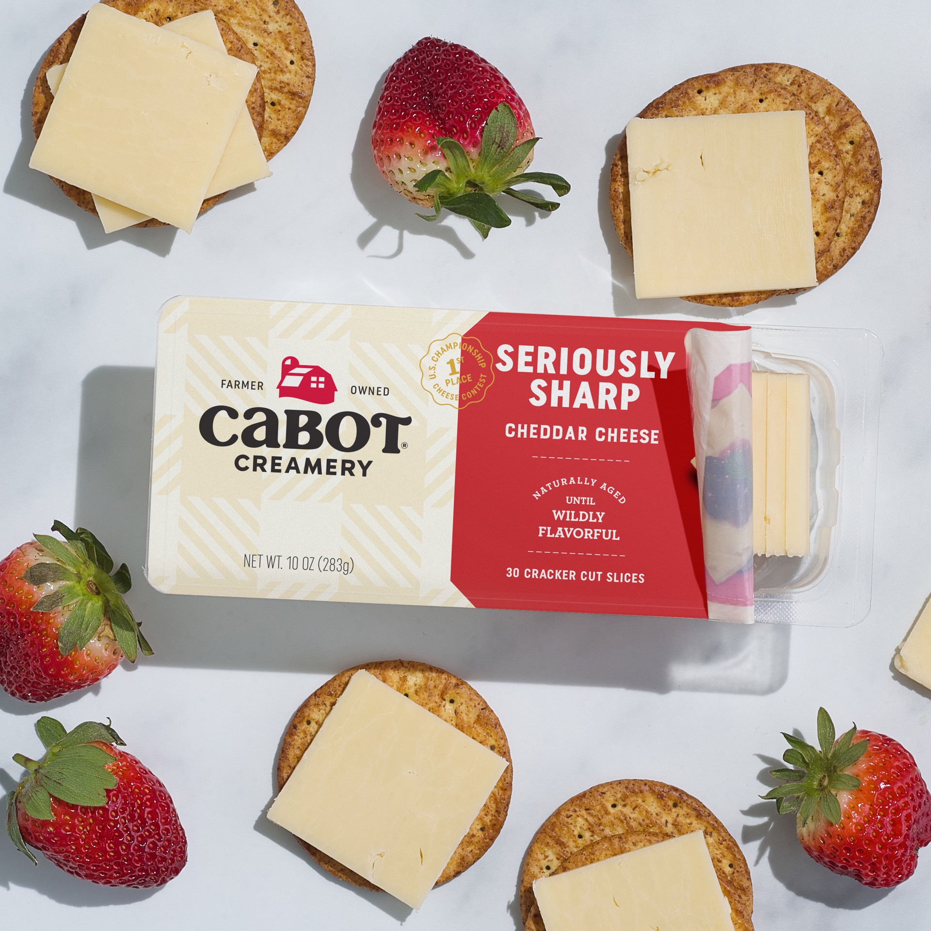 Pre-sliced and ready to enjoy, Cabot Seriously Sharp is complex and wildly intense. The ultimate sharp cheddar experience.