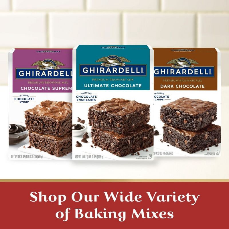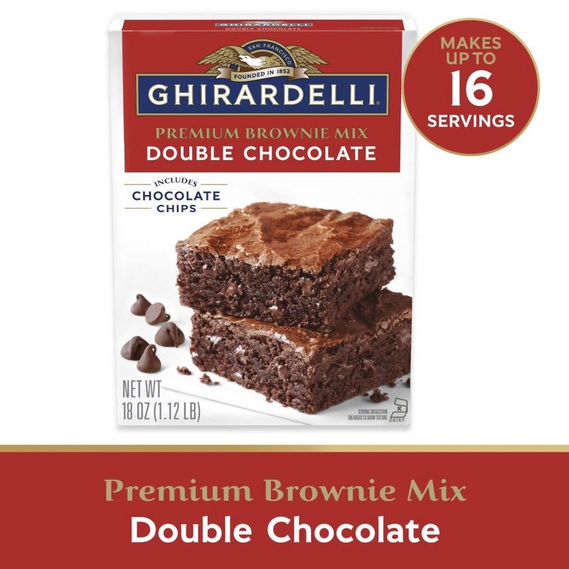 - GHIRARDELLI Double Chocolate Brownie Mix — a premium mix to indulge in the decadently rich chocolate taste that you expect from GHIRARDELLI