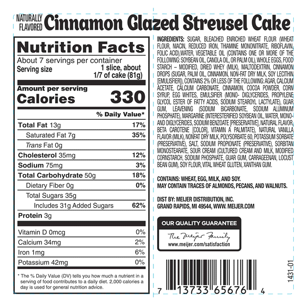 It's like your dream cinnamon roll, but even more delicious. Make breakfast your favorite meal of the day with a soft slice of Fresh from Meijer Cinnamon Streusel Creme Cake. Bursting with spicy cinna…