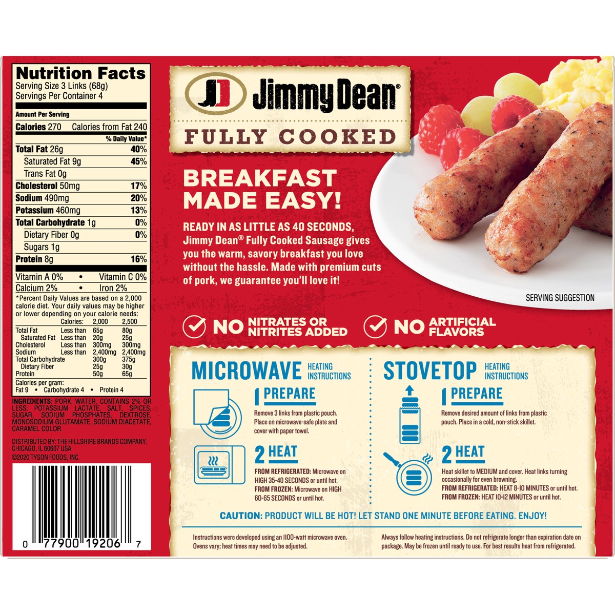 Jimmy Dean Fully Cooked Original Pork Breakfast Sausage Links are made with premium pork and seasoned to perfection with our signature blend of spices. These savory breakfast sausage links have 8 gram…