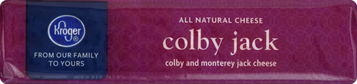 Kroger® Colby Jack Block Cheese is a crowd-pleaser, crafted with pasteurized milk, cheese culture, salt, and enzymes for a cheesy delight. Its smooth texture and blend of Colby and Monterey jack flavo…