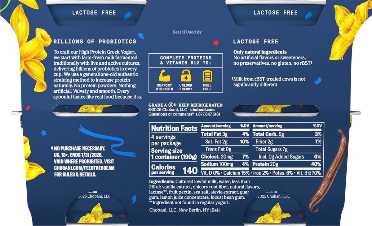 Chobani Lowfat Greek Vanilla Yogurt 4 - 6.7 oz Cups