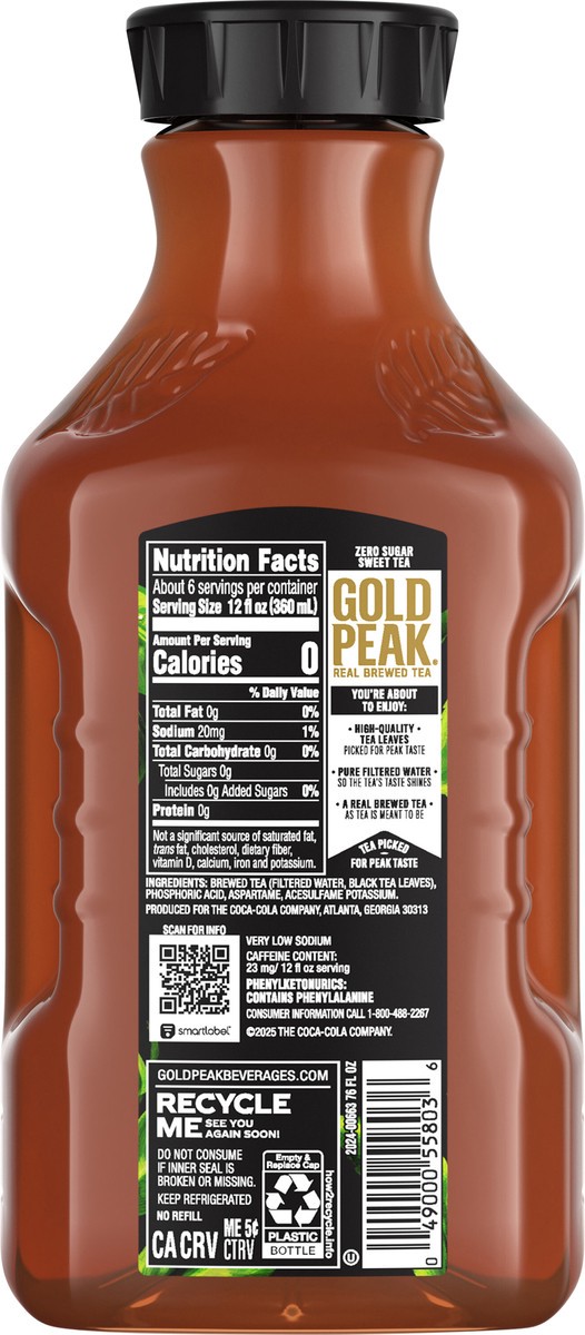 - Sugar-free sweet tea bursting with natural flavors76 fl oz bottle of Gold Peak Zero Sugar Sweet Tea