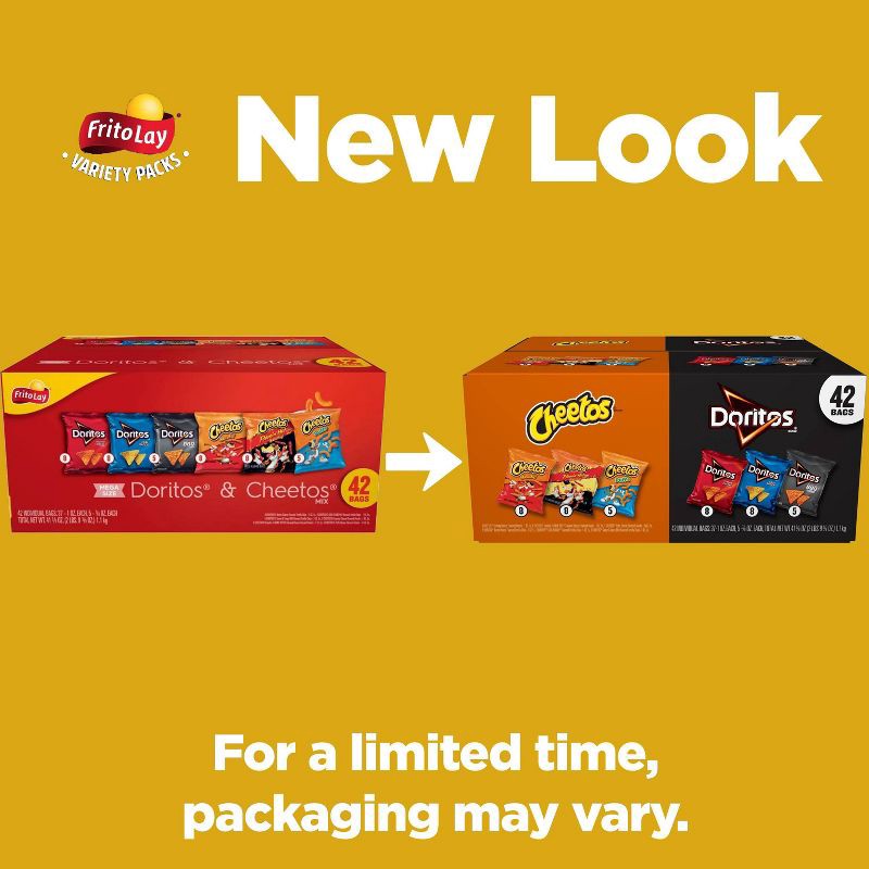 - Includes 1 (42 count) Frito-Lay Doritos & Cheetos Mix Variety Pack