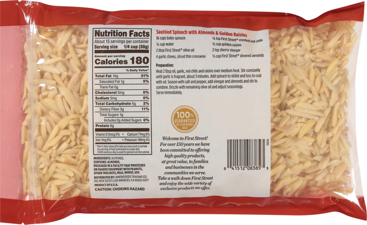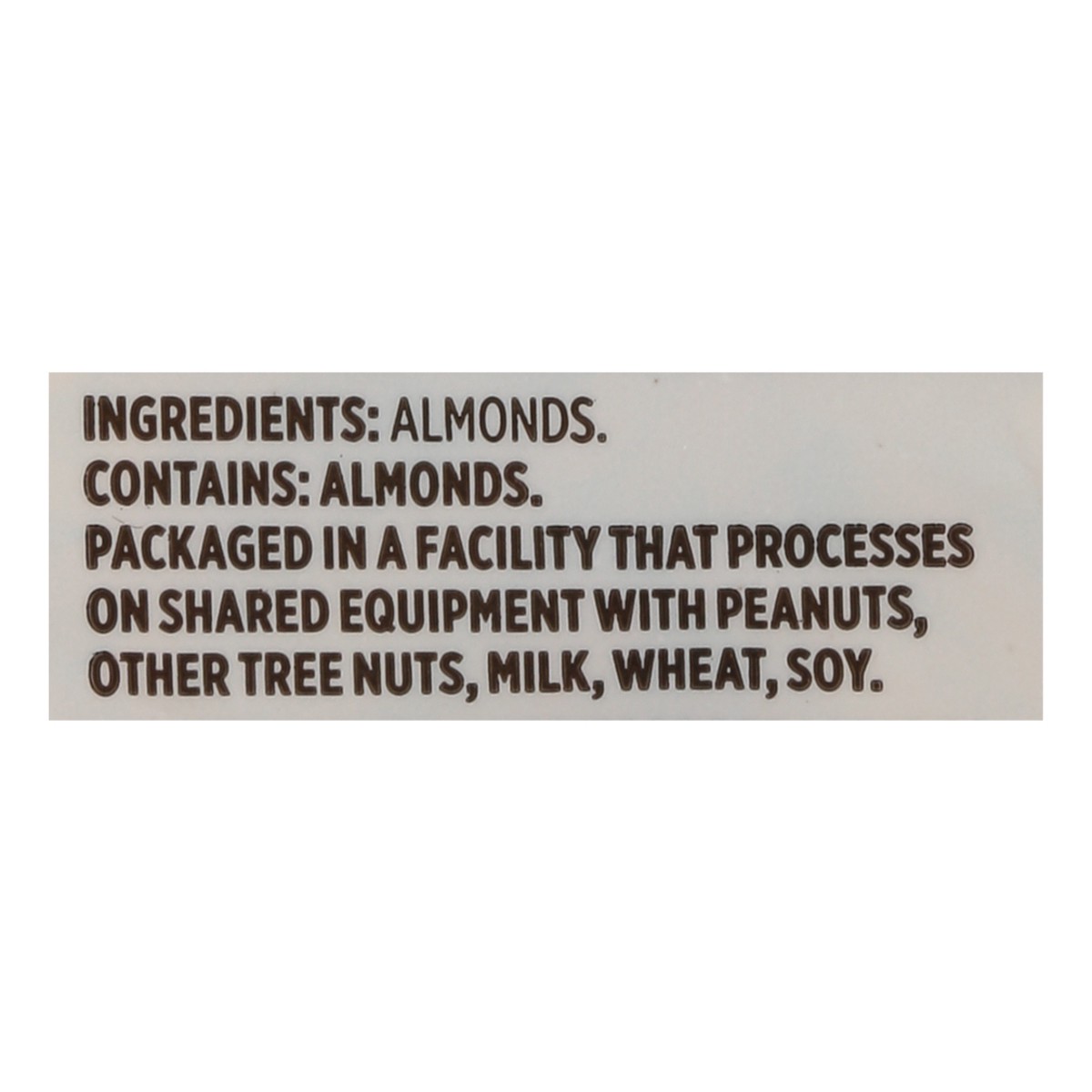 Contains: almonds. packaged in a facility that processes on shared equipment with peanuts, other tree nuts, milk, wheat, soy.