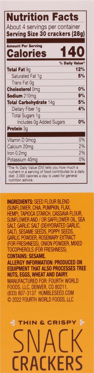 The Humble Seed Grain Free Everything Crackers 4.25 oz
