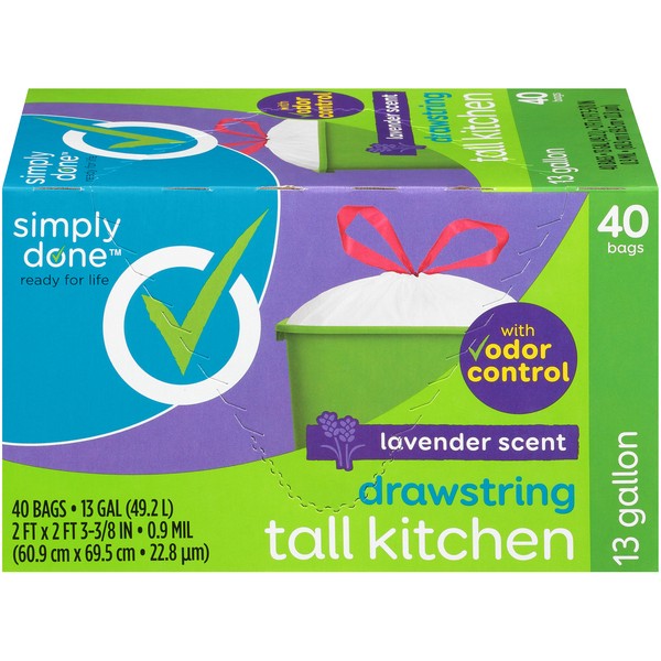 Simply Done Drawstring Tall Kitchen Bags, Lavender Scent
