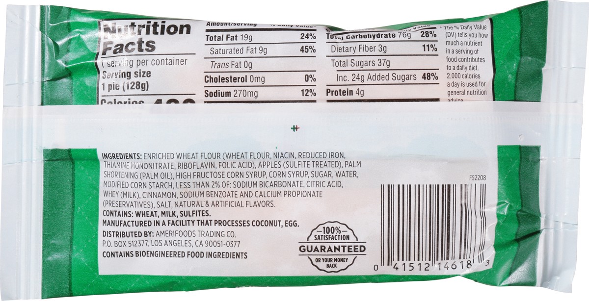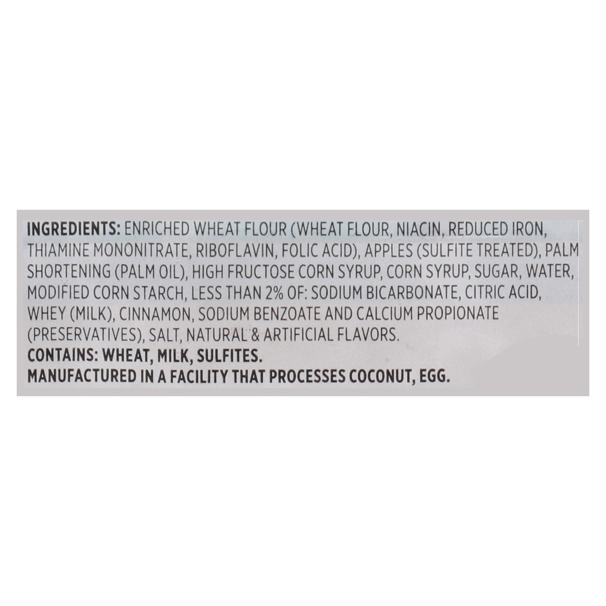 Enriched Wheat Flour (Wheat Flour, Niacin, Reduced Iron, Thiamine Mononitrate, Riboflavin, Folic Acid), Apples (Sulfite Treated), Palm Shortening (Palm Oil), High Fructose Corn Syrup, Corn Syrup, Suga…