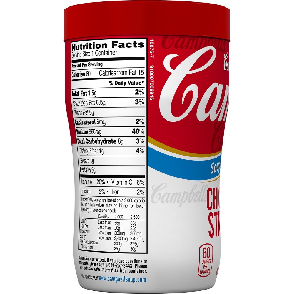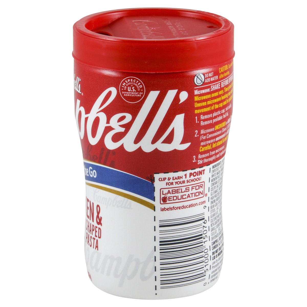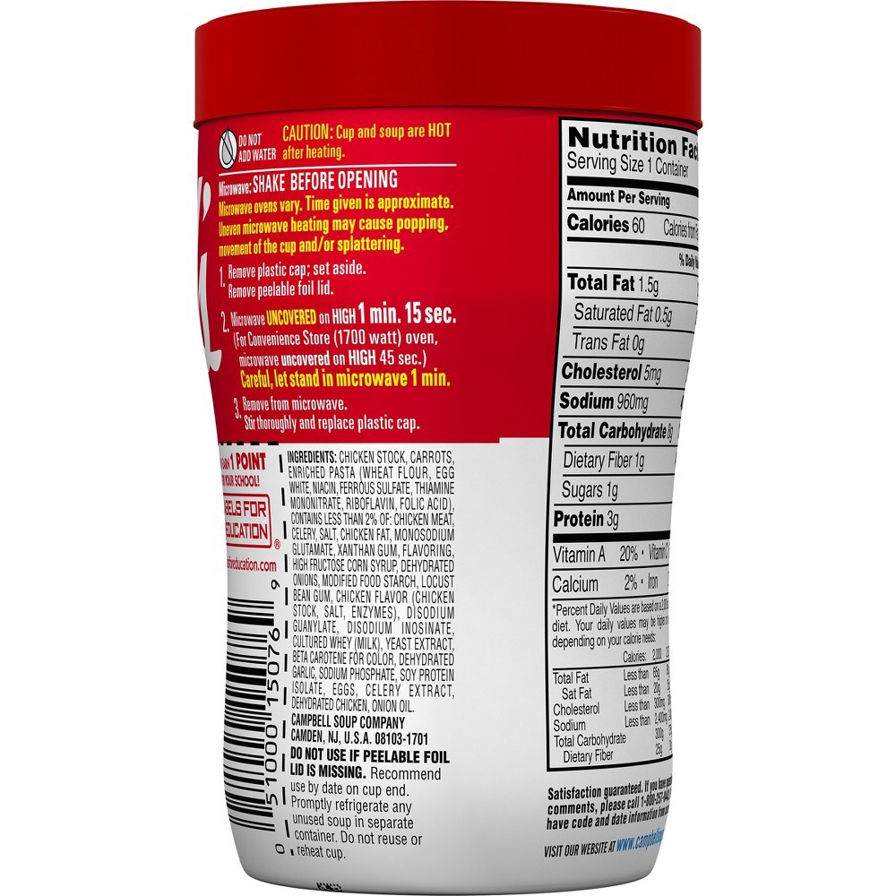- One (1) 10.75 oz microwavable cup of Campbell’s Condensed Sipping Soup, Chicken With Star-Shaped Pasta