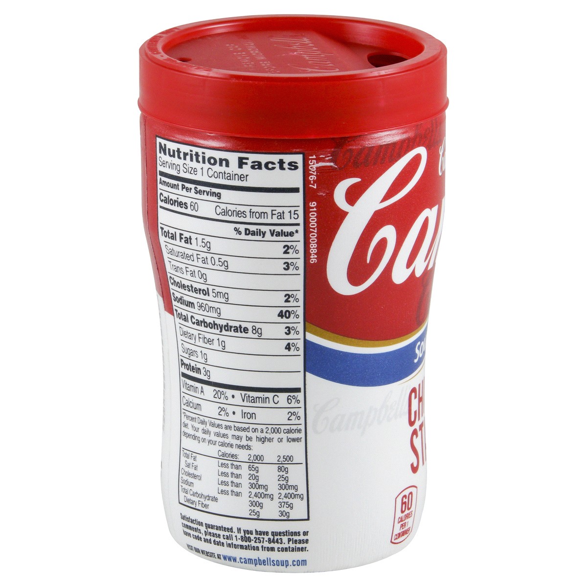 - Each 10.75 oz microwavable cup of soup contains a single serving that’s easy to sip straight from the container