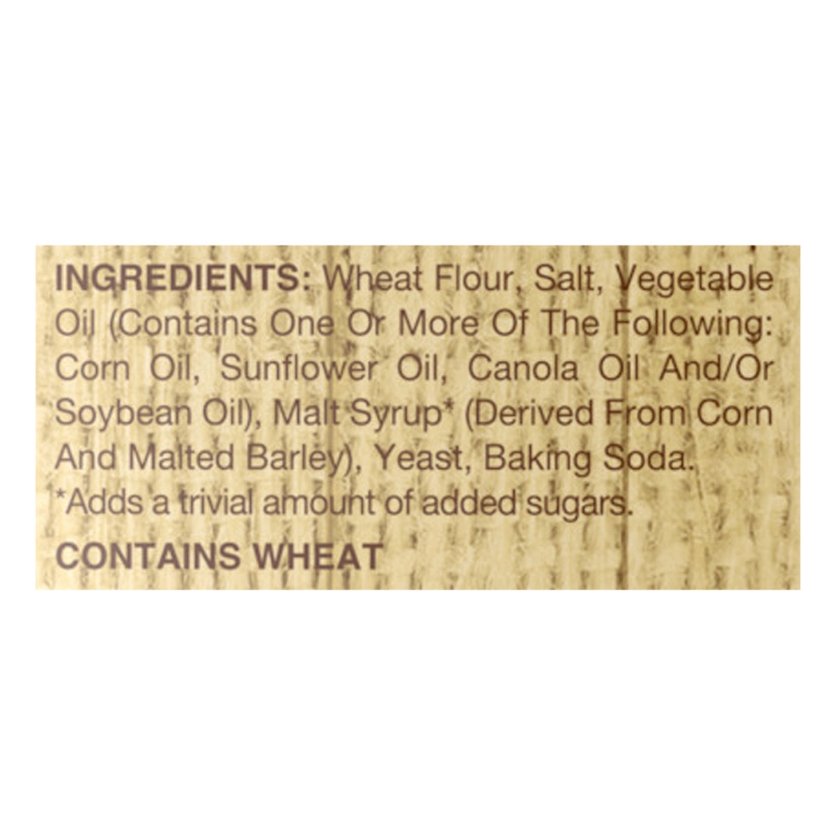 Wheat Flour, Salt, Vegetable Oil (Contains One or More of the Following: Corn Oil, Sunflower Oil, Canola Oil and/or Soybean Oil), Malt Syrup* (Derived from Corn and Malted Barley), Yeast, Baking Soda.…