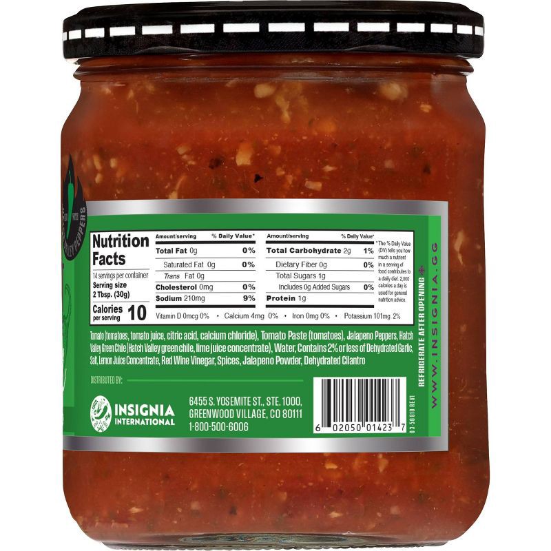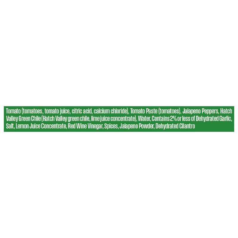 Tomato (Tomatoes, Tomato Juice, Citric Acid, Calcium Chloride), Tomato Paste (Tomatoes), Jalapeno Peppers, Hatch Valley Green Chile (Hatch Valley Green Chile, Lime Juice Concentrate), Water, Contains …