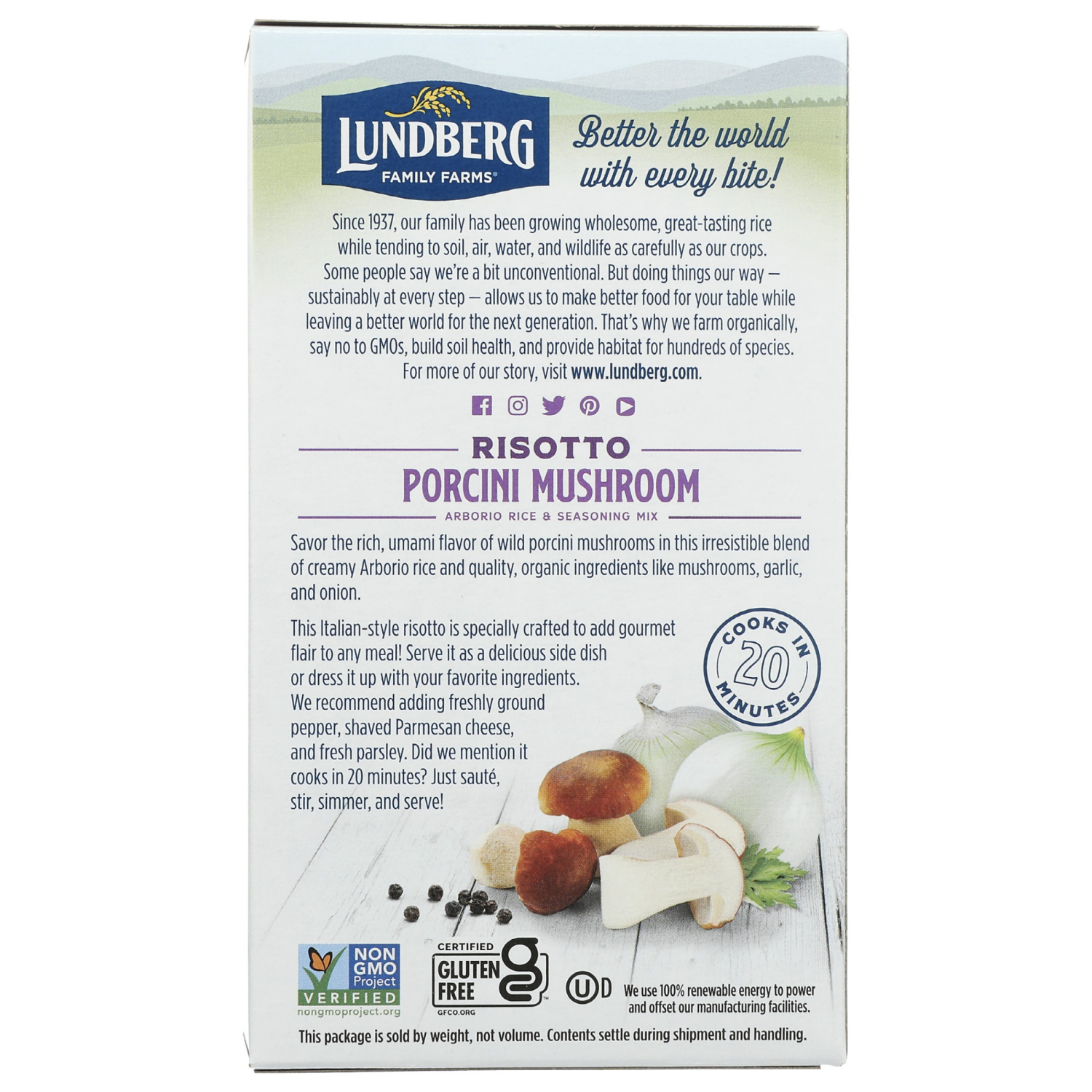 *Regenerative Organic Certified Arborio Rice, Sea Salt, *Cane Sugar, *Rice Flour, *Onion, *Dried Mushrooms, *Garlic, *Yeast Extract (*Yeast Extract, Salt), *Natural Butter Flavor (*Maltodextrin, *Natu…