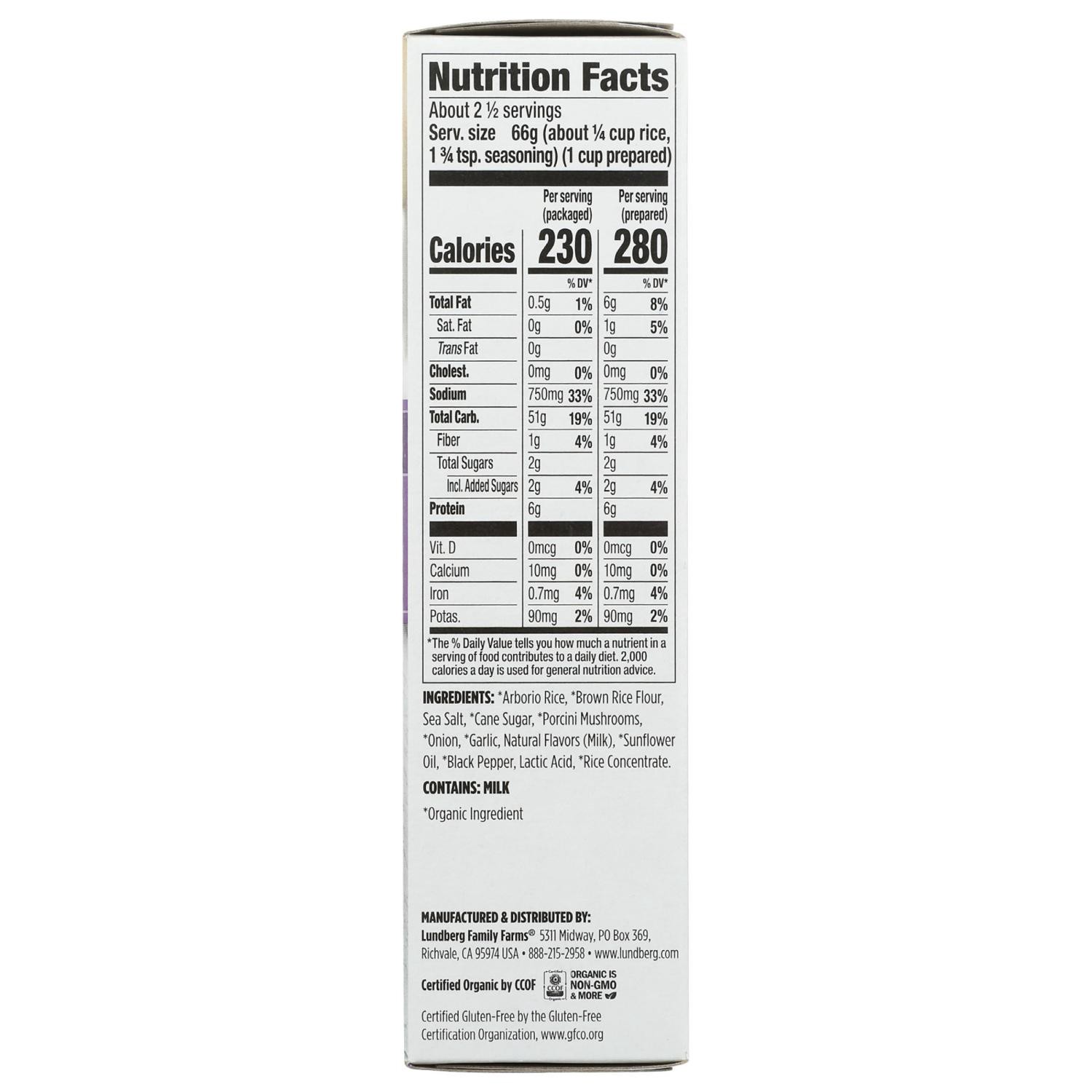 *Regenerative Organic Certified Arborio Rice, Sea Salt, *Cane Sugar, *Rice Flour, *Onion, *Dried Mushrooms, *Garlic, *Yeast Extract (*Yeast Extract, Salt), *Natural Butter Flavor (*Maltodextrin, *Natu…