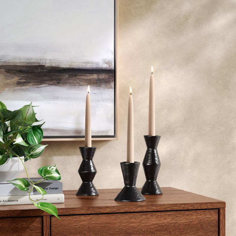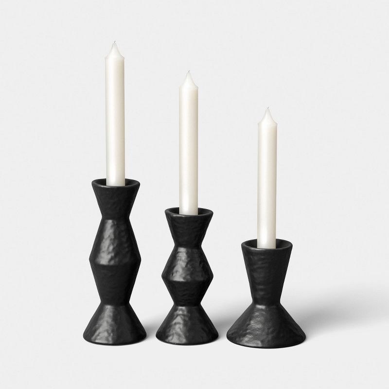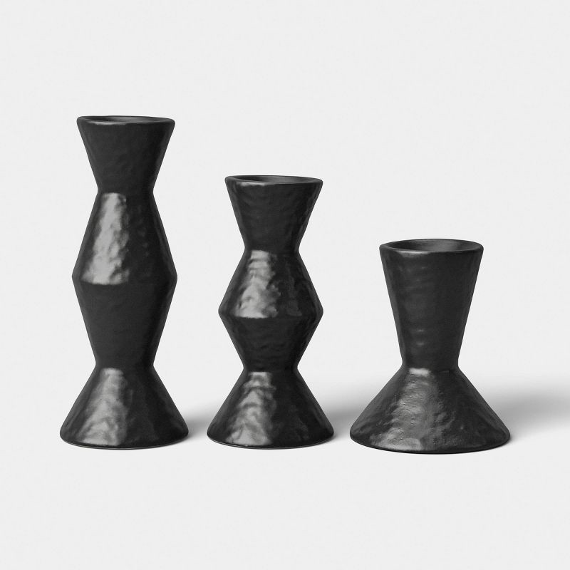 Set of 3 Black Ceramic Taper Candle Holders - Threshold™