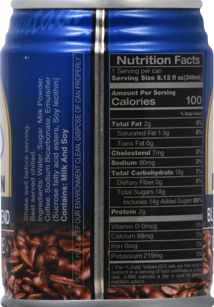 Water, Coffee Extract, Sugar, Dry Whole Milk, Sodium Bicarbonate, Emulsifiers (Sucrose Fatty Acids Esters, Soy Lecithin).
