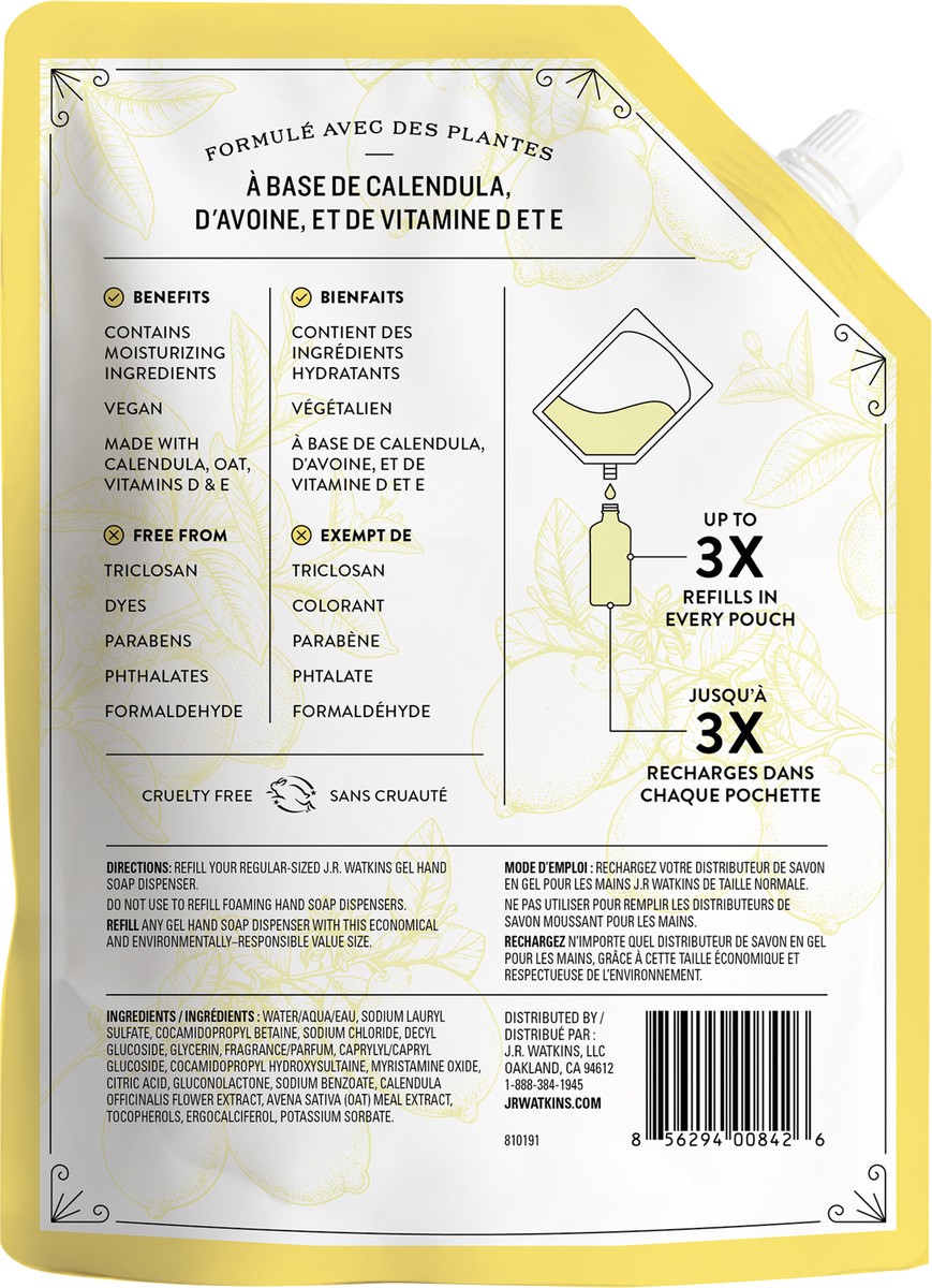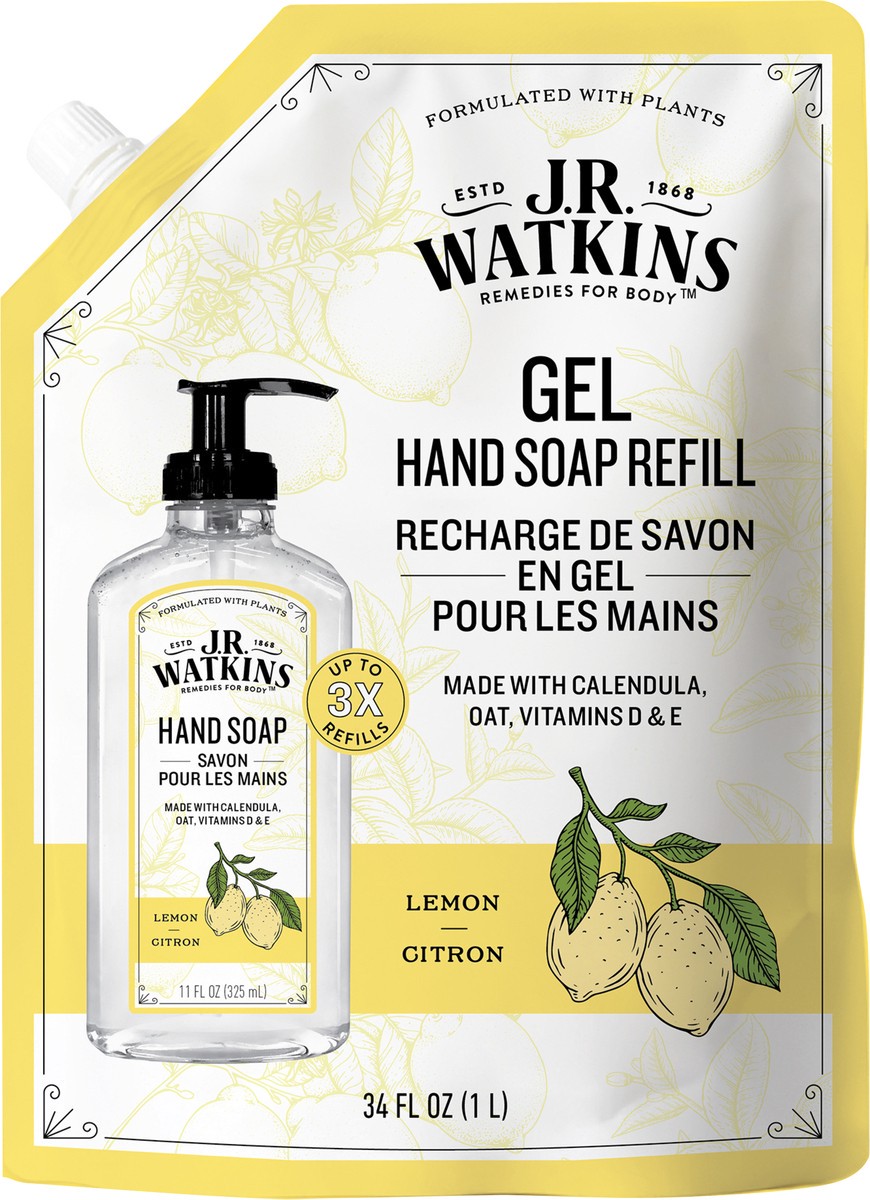 J.R. Watkins Gel Hand Soap Refill, Lemon, 34 Fl. oz.