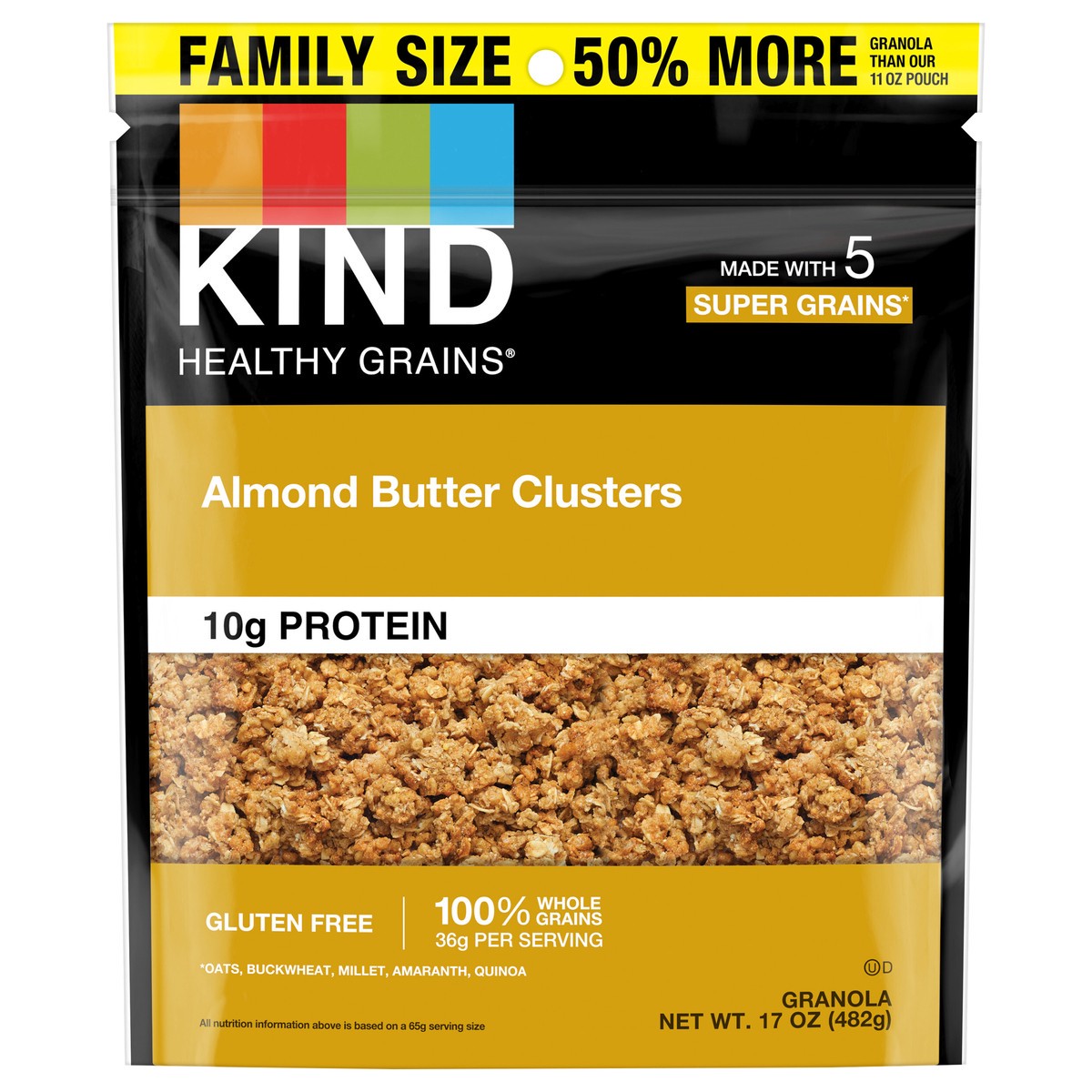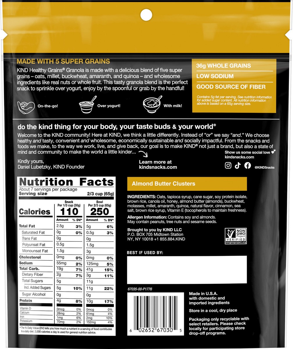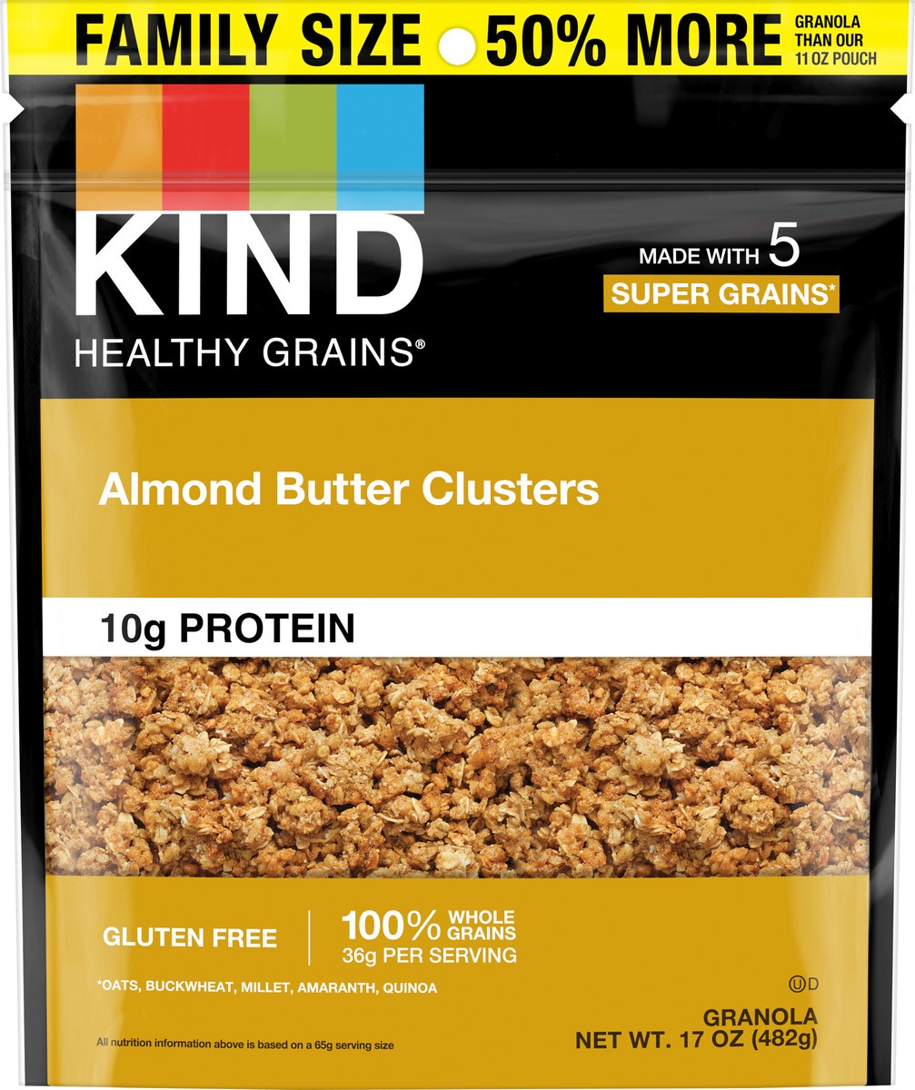 KIND HEALTHY GRAINS Granola, Healthy Snack, Almond Butter Granola Clusters, 10g Protein, Snack Mix, 17 OZ