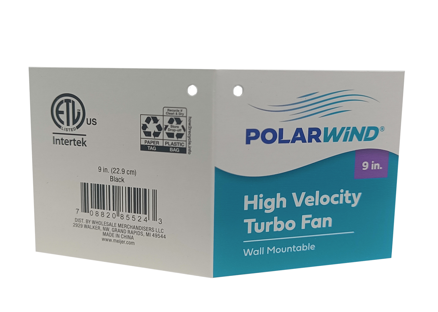 Polar Wind High Velocity Turbo Fan, Black, 9 In