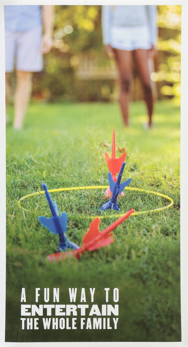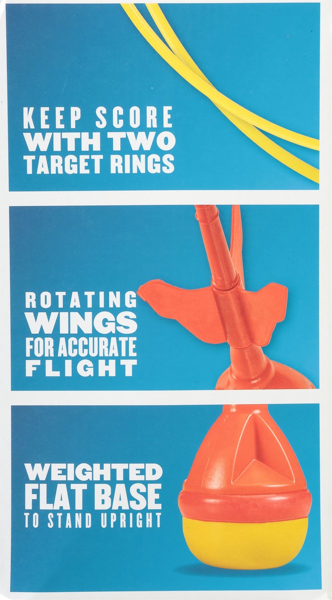 Includes: 4 Soft tip lawn darts; 2 targets; 1 carry bag. A fun way to entertain the whole family. Keep score with two target rings. Rotating wings for accurate flight. Weighted flat base to stand upri…