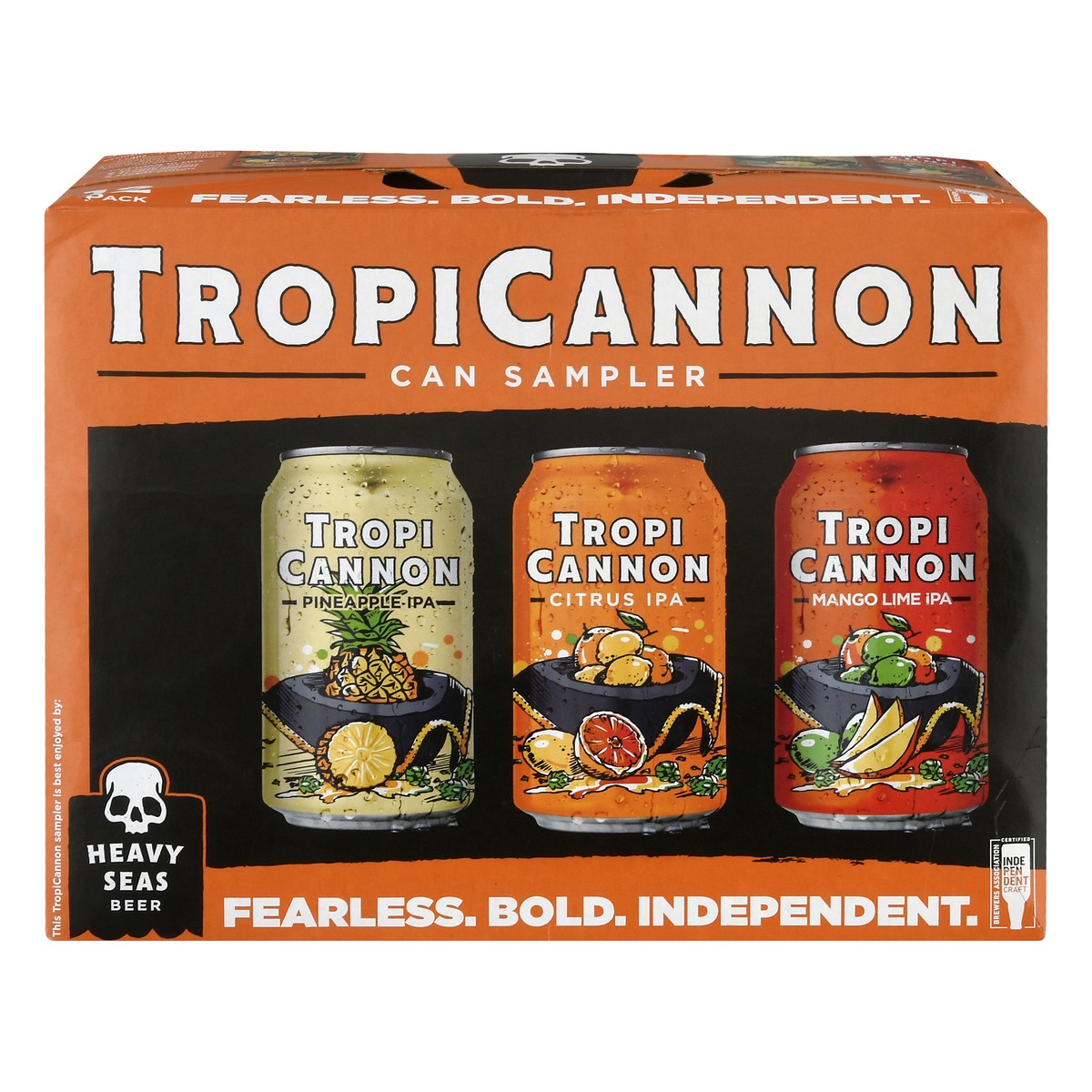 Included in this 12 pack are: 6 TropiCannon. 3 TropiCannon w/pineapple. 3 TropiCannon w/mango & lime. Fearless. Bold. Independent. Certified Independent Craft Brewers Association. HeavySeasBeer.com. V…