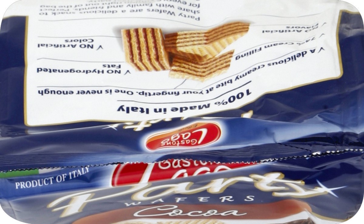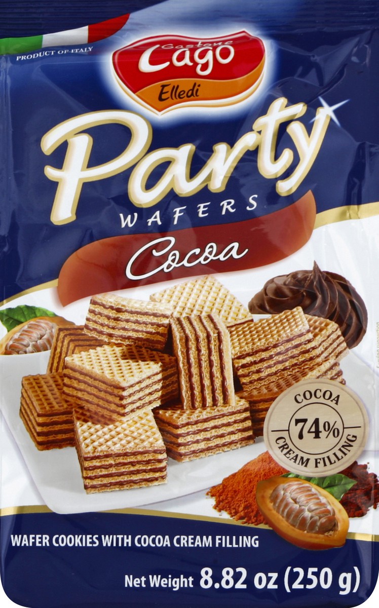 Wafer cookies with cocoa cream filling. 74% cocoa cream filling. A delicious creamy bite at your fingertip. One is never enough. 74% cream filling. No hydrogenated fats. No artificial flavors. No arti…