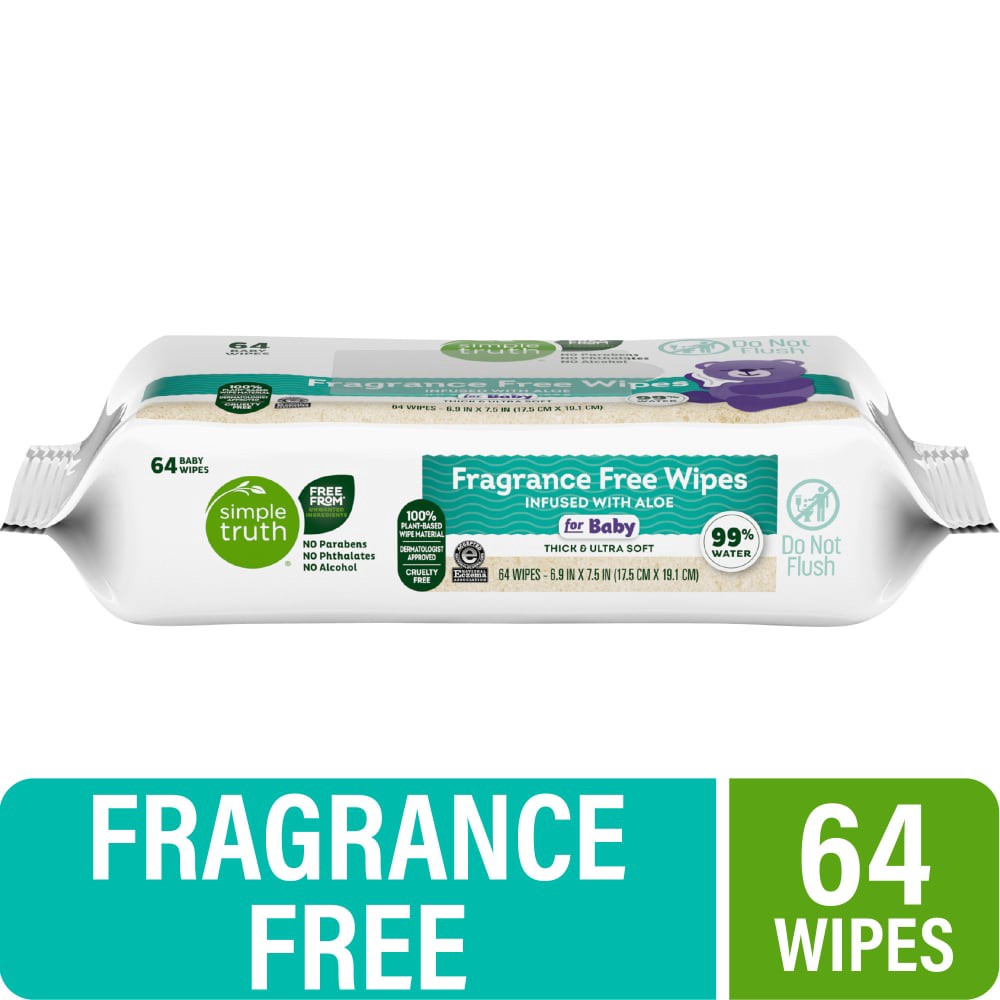 Simple Truth® Fragrance Free Baby Wipes help provide the gentle care your baby deserves. Infused with aloe, these 100% plant-based wipes are dermatologist approved and free from unwanted parabens, pht…