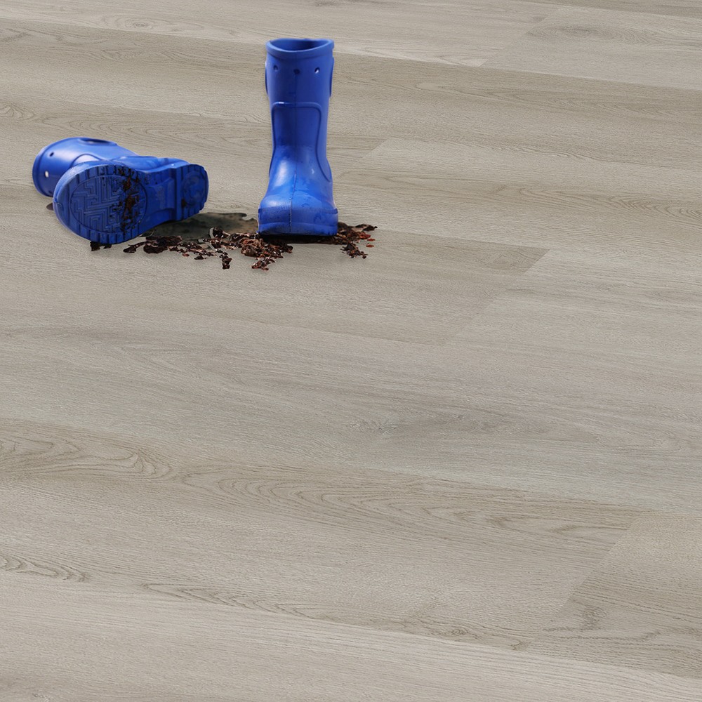 Wider 8.9-in luxurious warm light grey oak features a wirebrushed surface texture. Pergo floors with WetProtect® have a lifetime waterproof surface and subfloor guarantee, making them perfect for high…