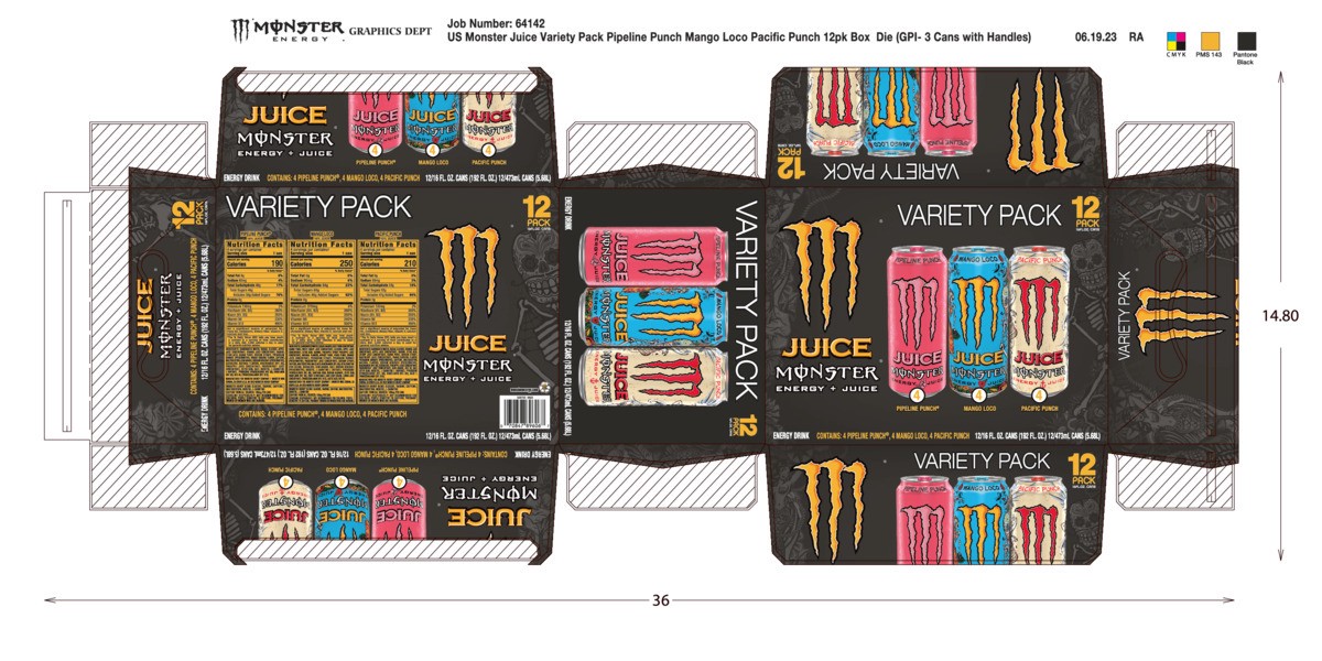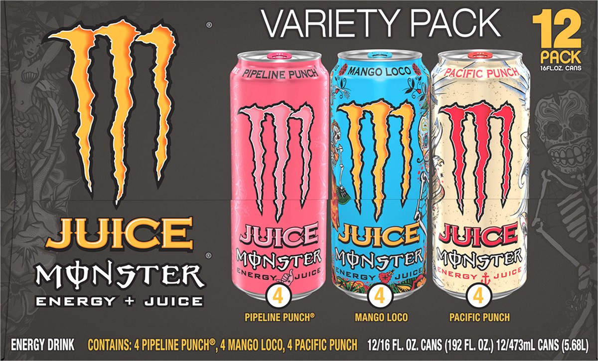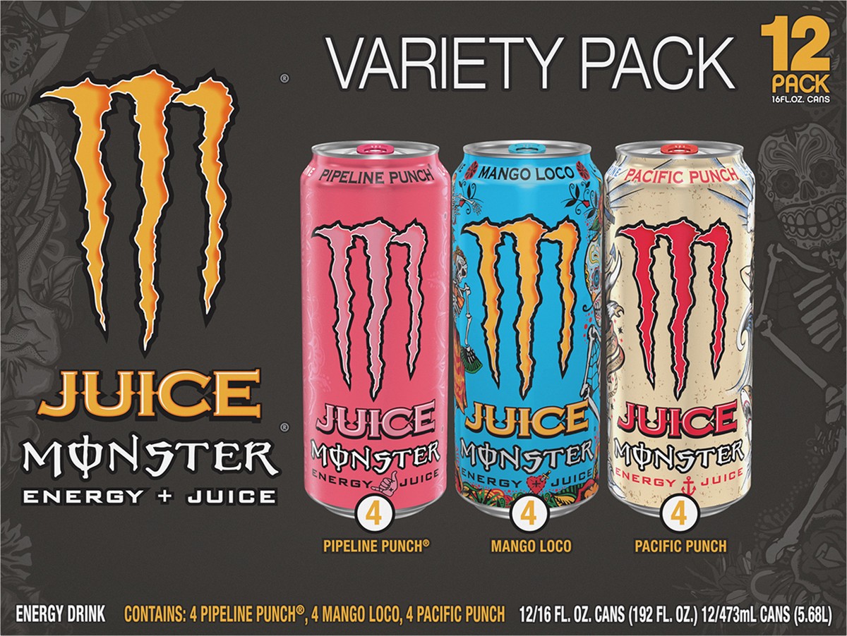 Monster Energy Monster Juice Variety Pack Mango Loco, Pipeline Punch, and Pacific Punch 12 Pack