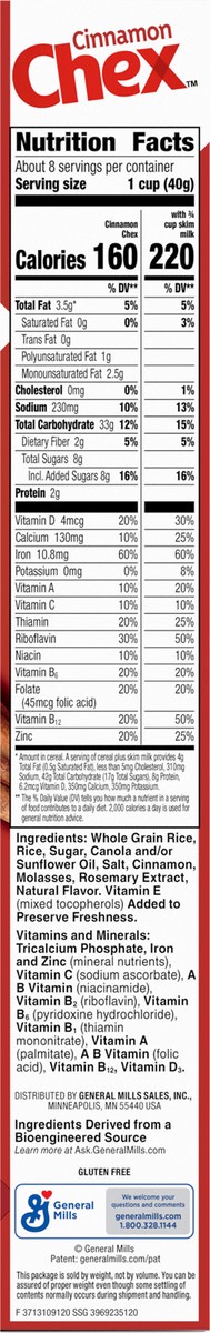 Cinnamon Chex Cereal Rice Sweetened With Real Cinnamon Gluten Free - 12 Oz