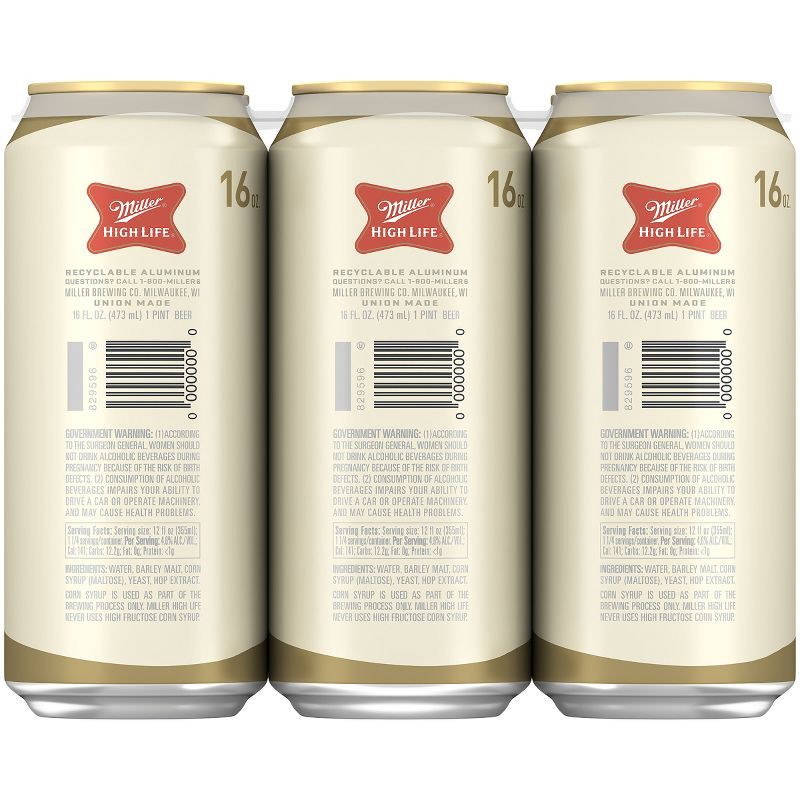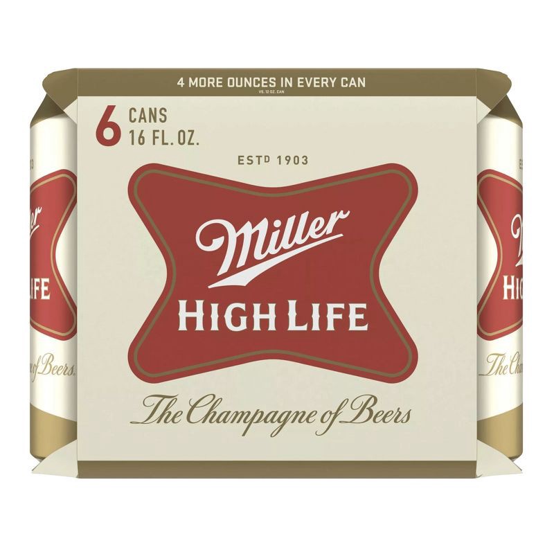 - You'll get six 16-ounce beer cans of Miller High Life Lager Beer