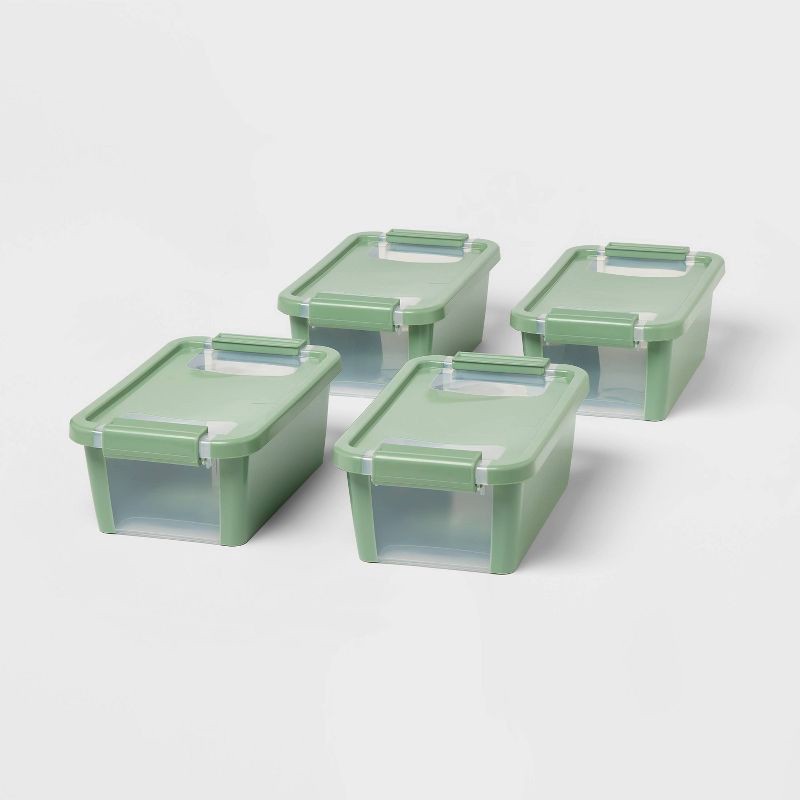 Keep your everyday household items neatly stored with these 4-Pack Latching Window Utility Storage Boxes from Brightroom™. This set includes four 2.5-quart utility storage boxes in a versatile green h…