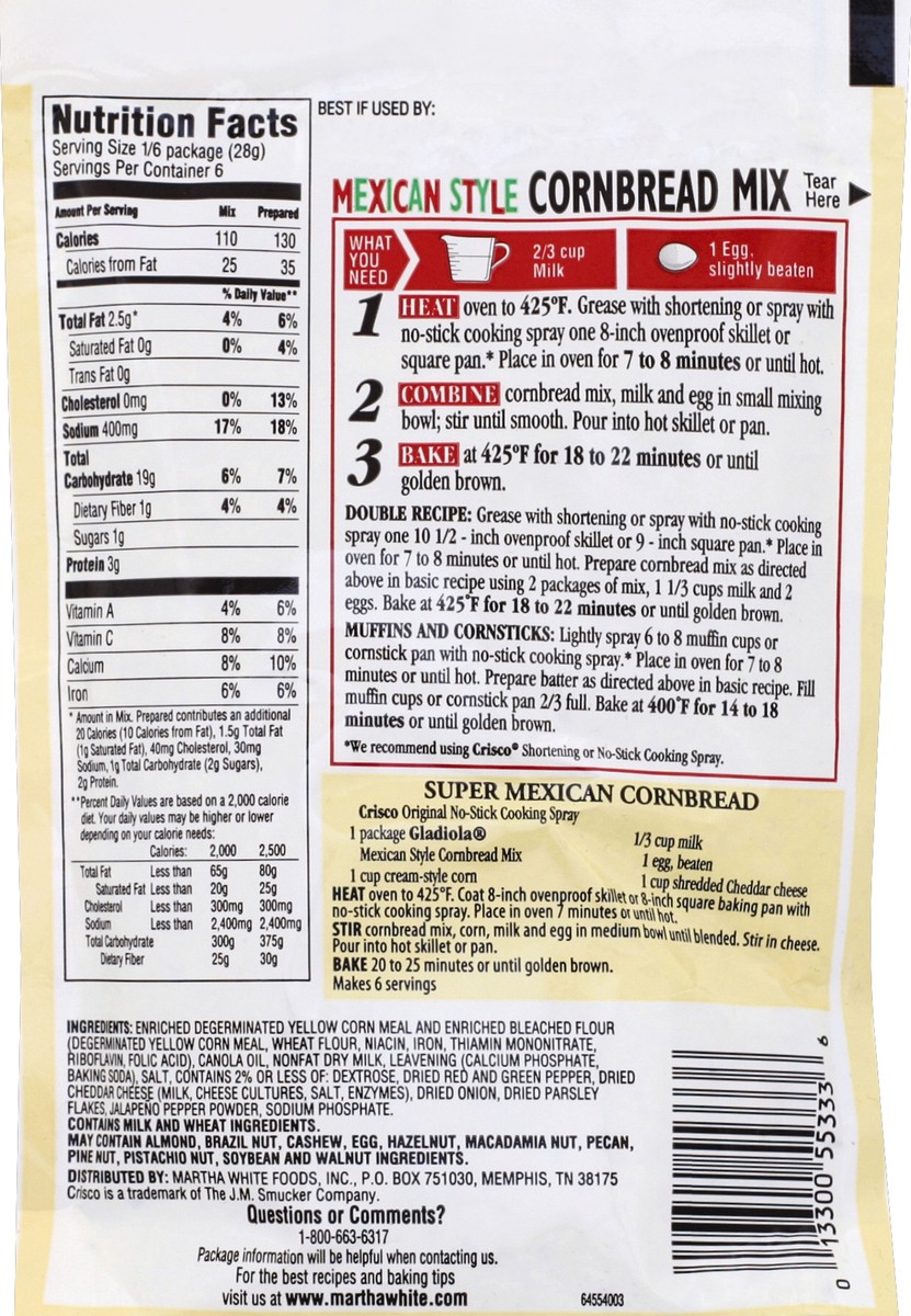 - One 6 oz pouch of Martha White Gladiola Mexican Style Cornbread Mix