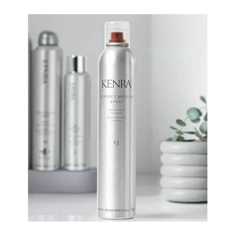 Kenra Perfect Medium Spray 13 provides optimum styling control without stiffness. Shake Well. Hold can 8–10 inches from hair, and spray for desired styling and finishing resultsOn a hold factor scale …
