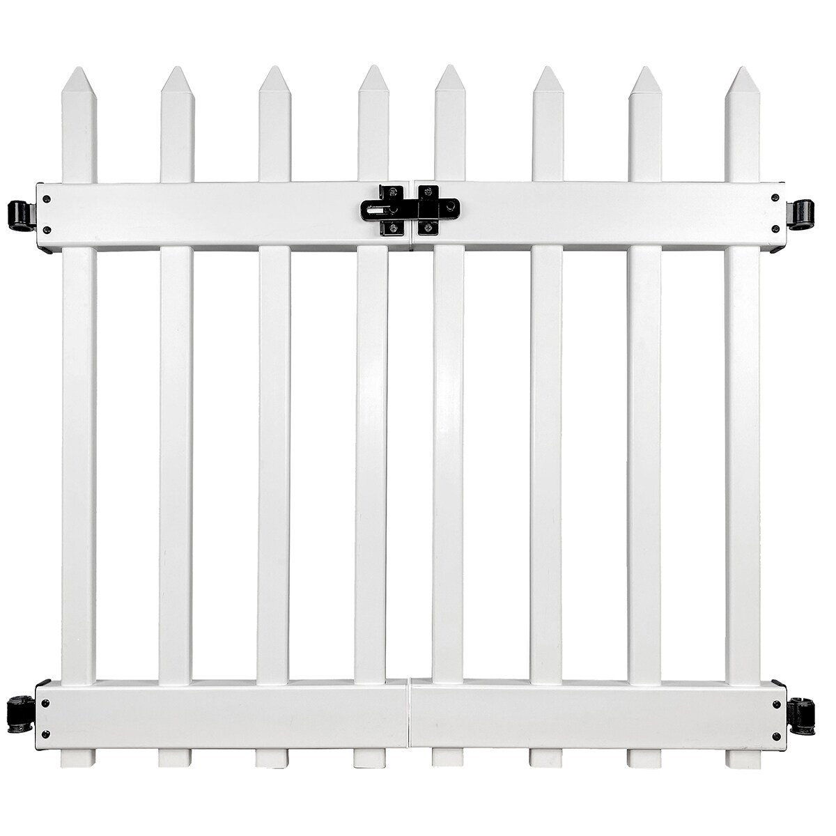 34in H x 40in W White Vinyl Gate. Gate features a weather resistant vinyl finish that will not rust or corrode and stands the test of time and weather, so gate will last for years to come. Get the loo…