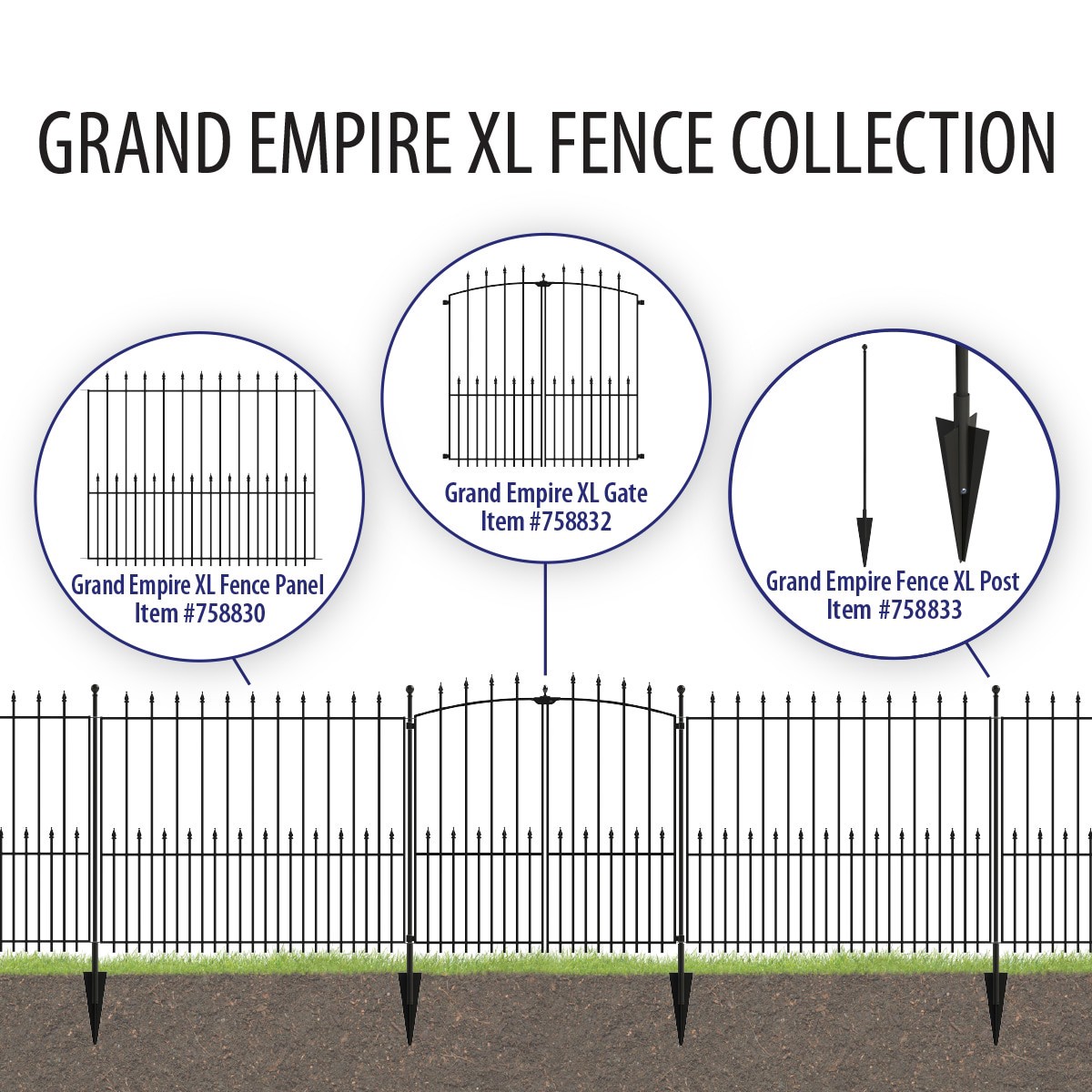 YARDLINK Grand Empire XL 4-ft H x 4-ft W Powder-coated Steel No Dig Decorative Walk-thru Spaced picket Fence gate
