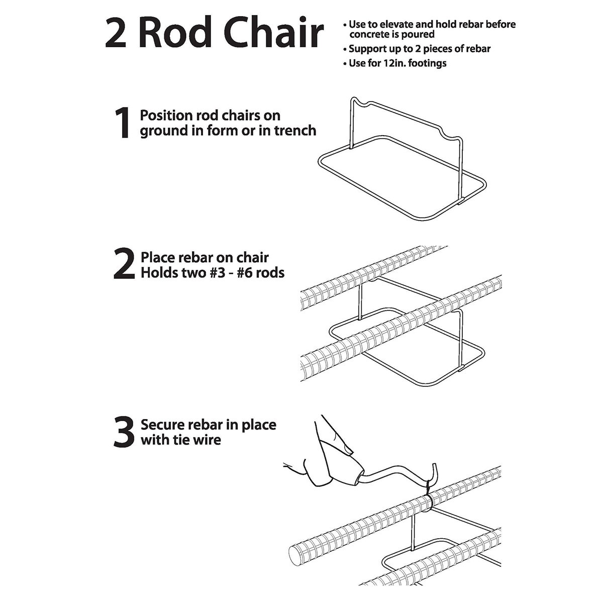 Use to elevate and hold rebar off the ground before concrete is poured. Use for 12in footings. Holds up to 2 pieces of rebar. Use rebar ties to secure rebar to metal basket. Chair base provides stabil…