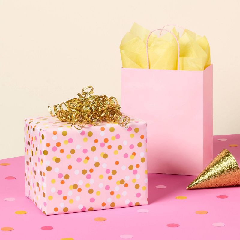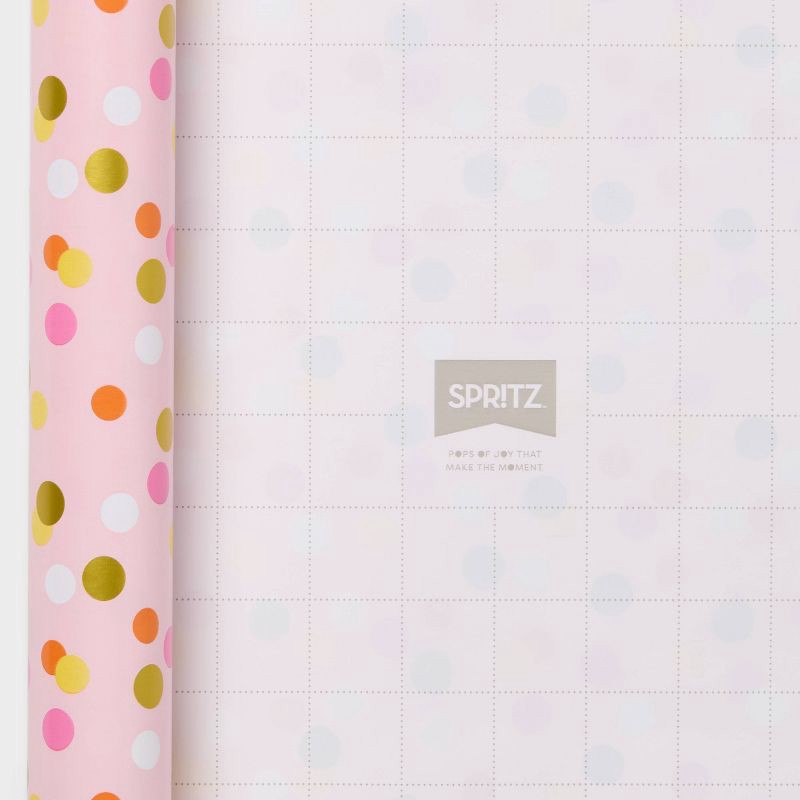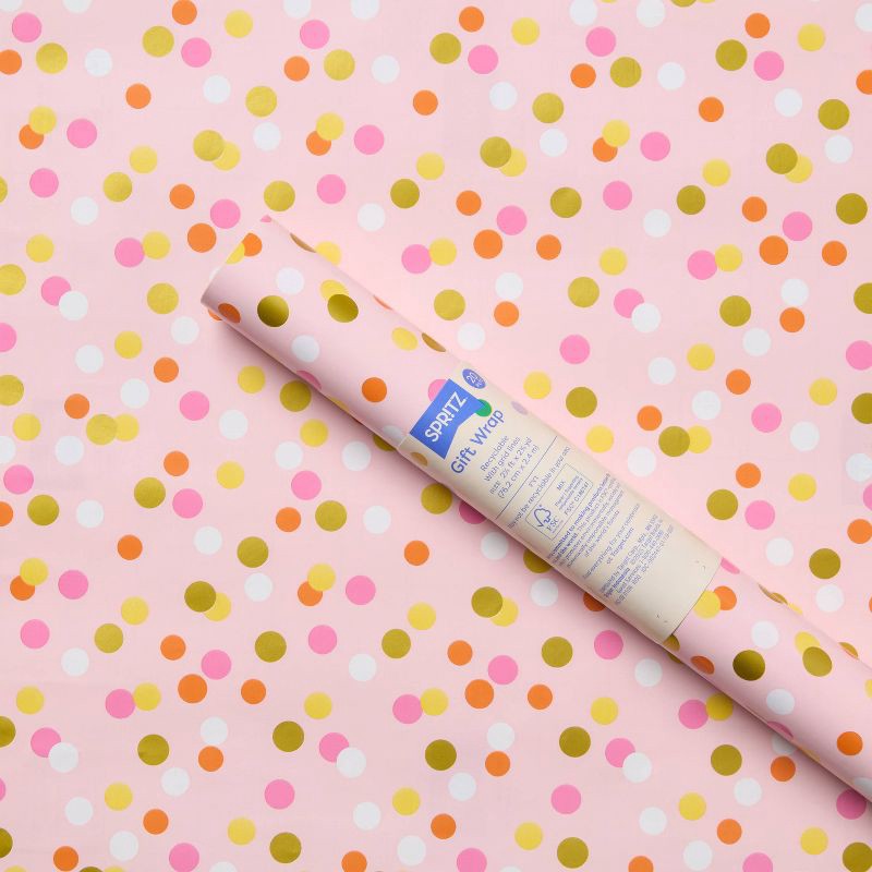 Foil Dot Wrapping Paper Pink - Spritz™: Multicolor Polka Dots, Classic Patterns, 94.5" x 30" Gift Wrap
