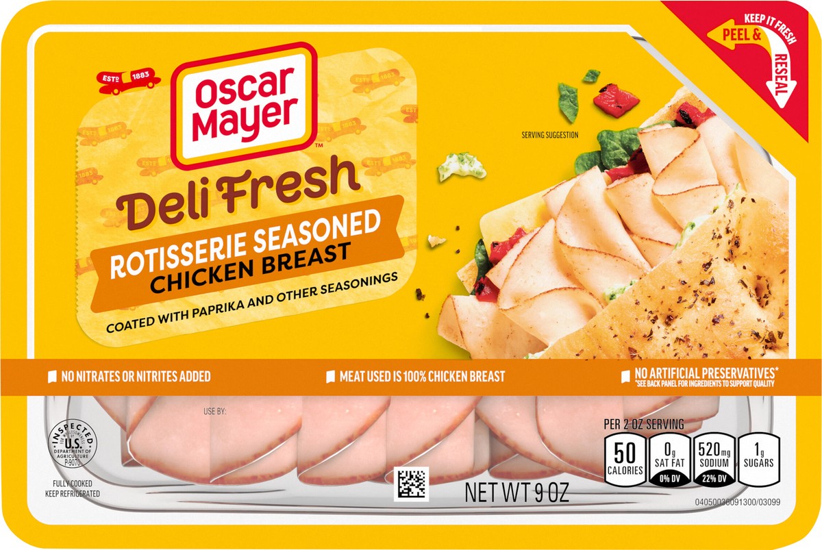 Skip the deli line and enjoy the sliced chicken breast you know, love and trust. Oscar Mayer Deli Fresh Rotisserie Seasoned Chicken Breast delivers the flavorful slices you crave, coated with paprika …