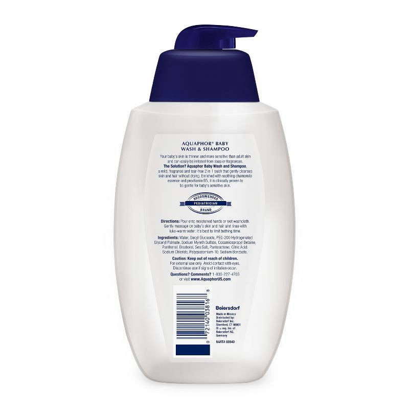 - One 25.4 fluid ounce pump bottle of Aquaphor Baby Wash and Shampoo