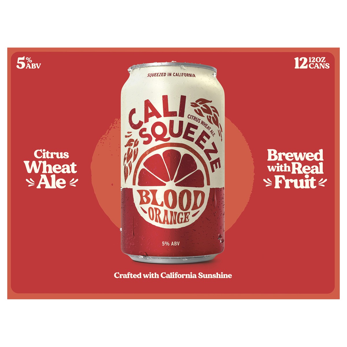 Cali Squeeze Blood Orange Wheat Ale Craft Beer, 12 Pack, 12 fl Oz Cans, 5% ABV