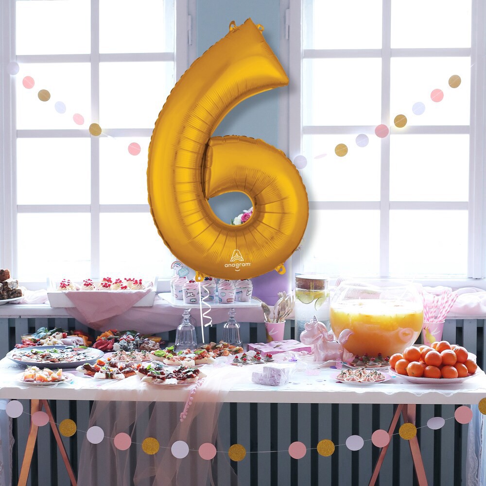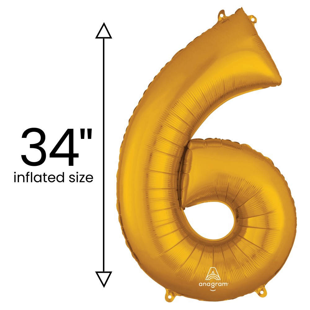 Gold Number 6 Helium Filled Balloon - 34 inches