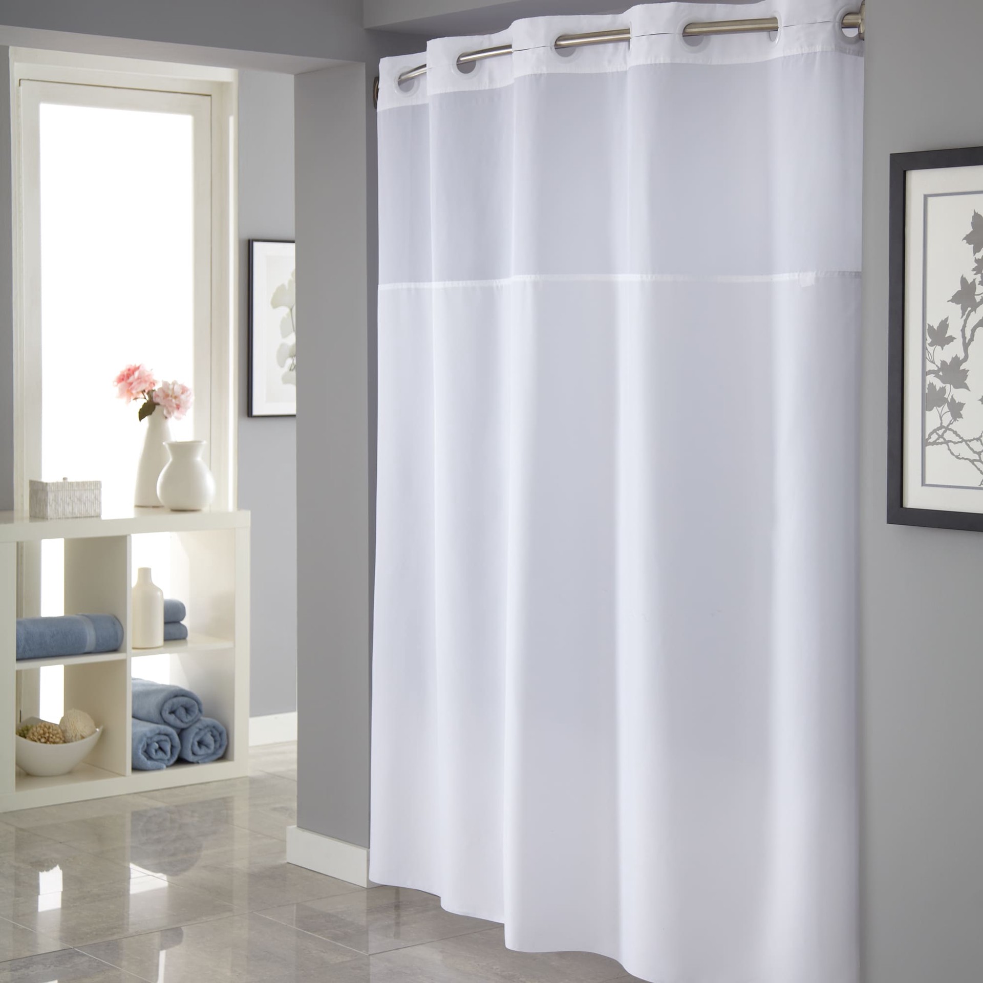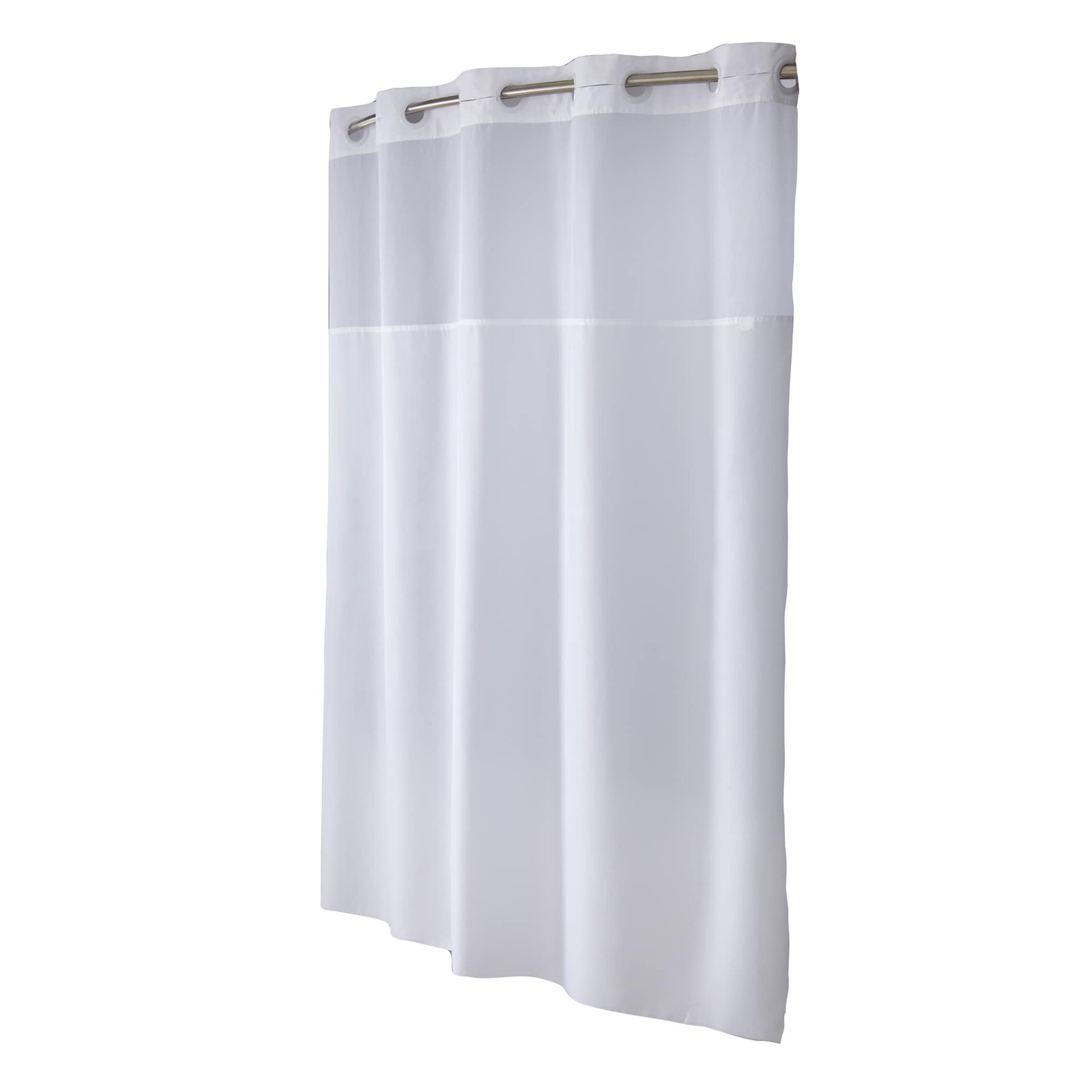 Hookless 71.0-in W x 74-in L White Solid Mildew Resistant Polyester Shower curtain and liner set